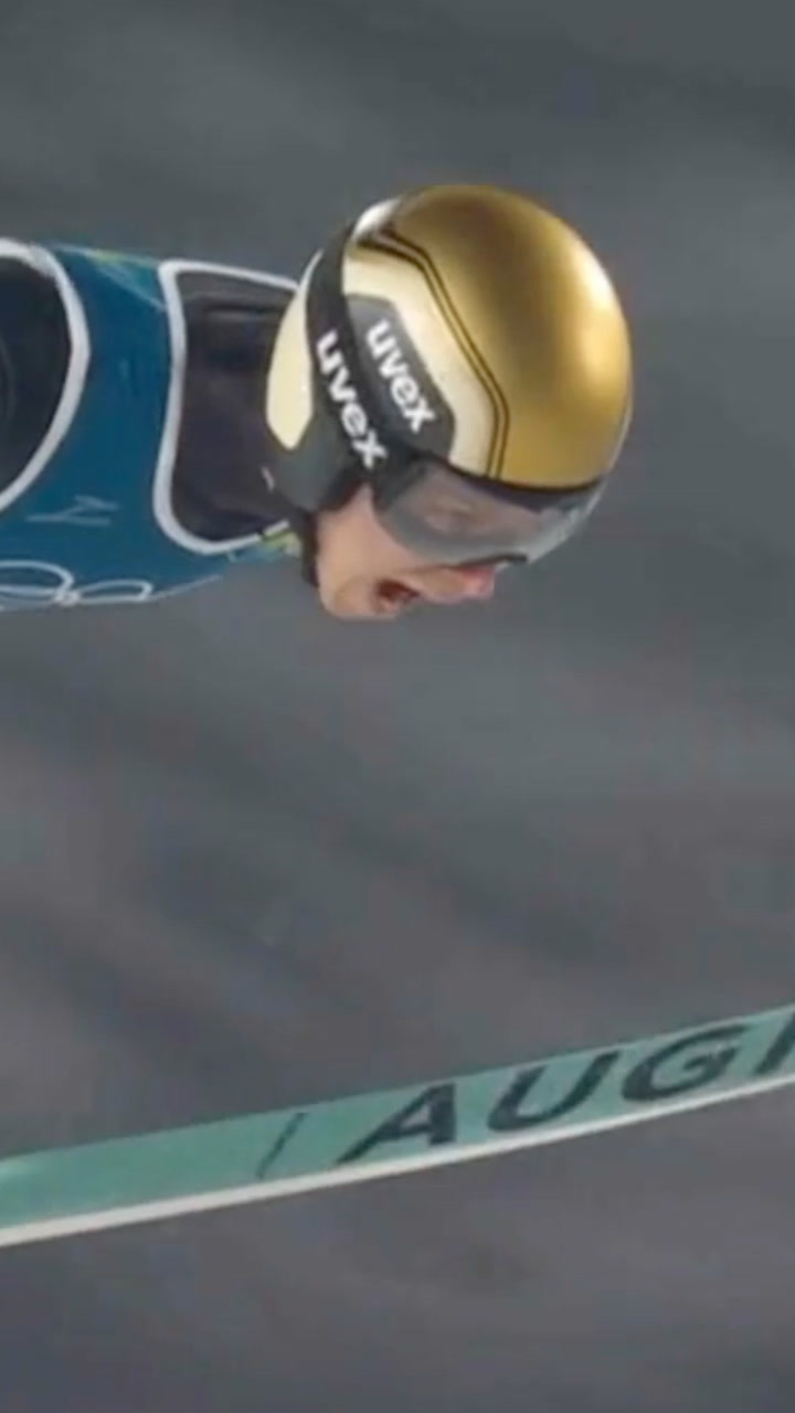 BRØLER: Skihopperen Giovanni Bresadola sjokkerte NRKs kommentatorer da han skrek under hoppet sitt i OL. Til Dagbladet forteller han hva som lå bak reaksjonen. Video: NRK / Bård Sørø Olsen.