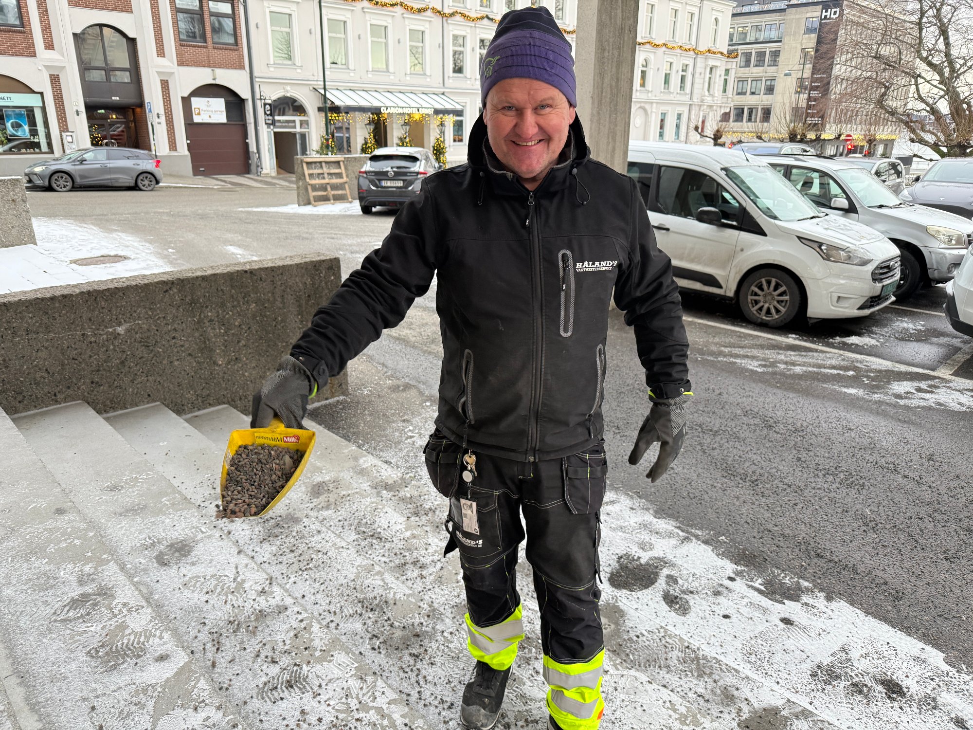2. jan 15:00 Selv med strÞ-skuffa i hÄnd gÄr det an Ä miste balansen totalt. Det fikk vaktmesterveteranen selv smertelig erfare. (KRS 213b)