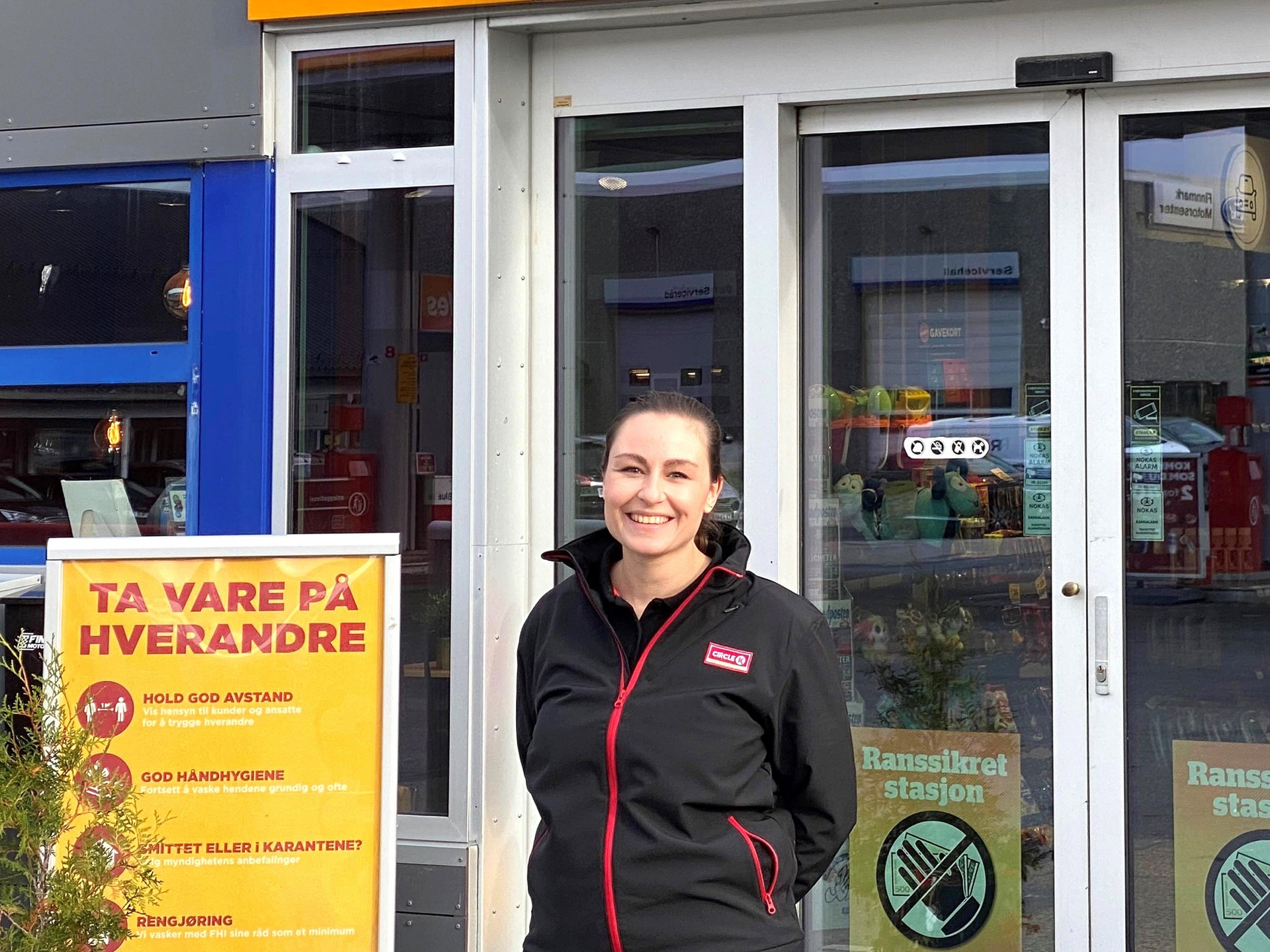 Ăverst pĂ„ kaffetronen i hos Circle K sitter Anne Valborg Haugland og kollegene hennes i Alta.