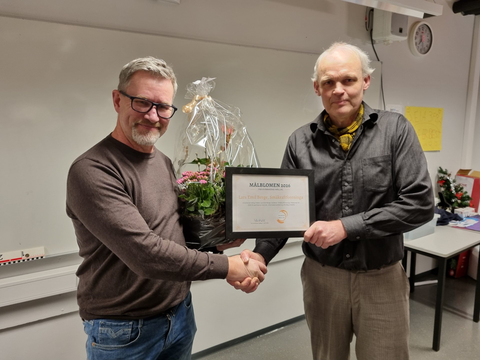 Tysdag 3. mars, under Kvinnherad Mållag sitt årsmøte, blei Lars Emil Berge frå Åkra tildelt Målblomen.
