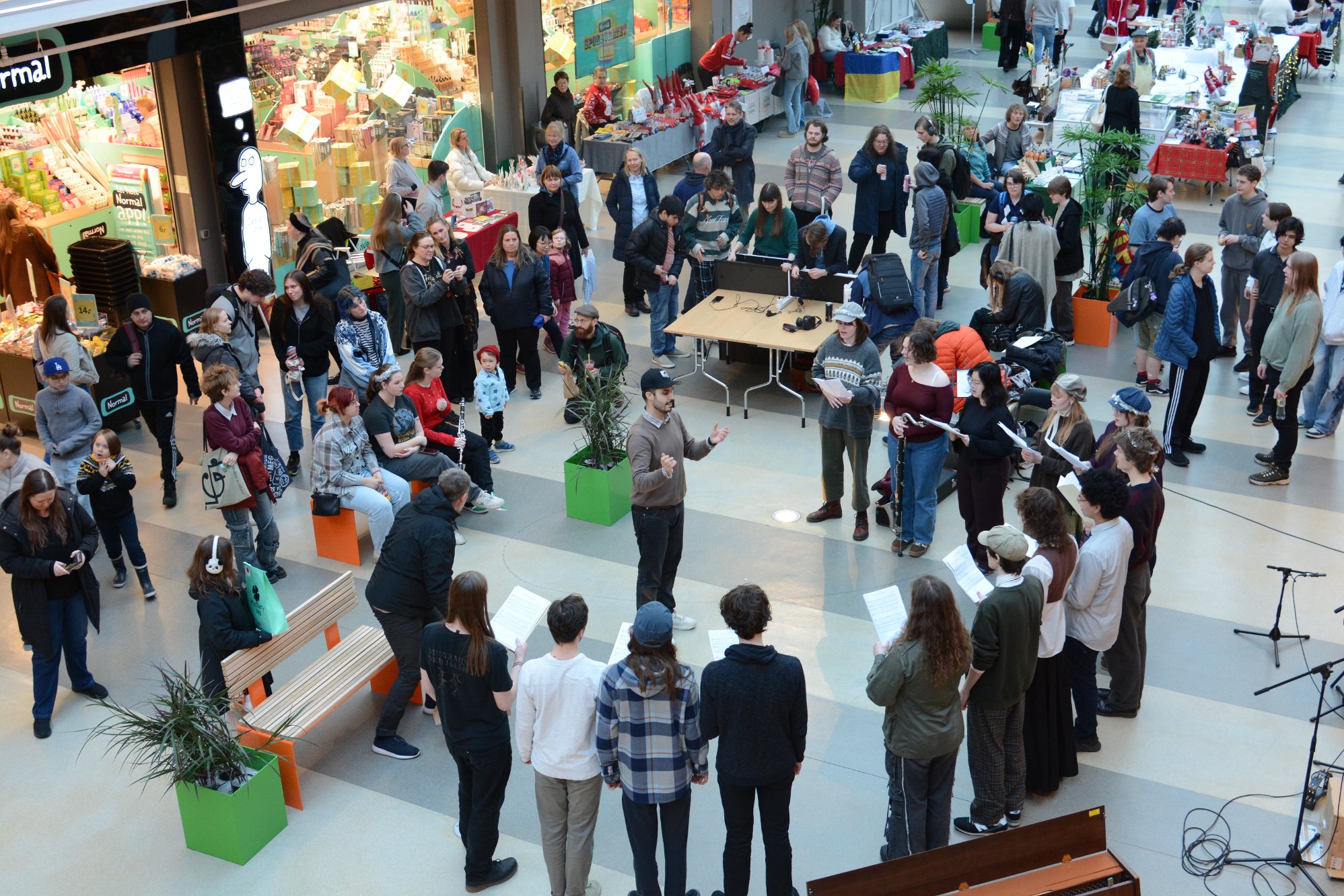 Laurdag 13. desember dukka det plutseleg opp mikrofonar, instrument og ein drÞss med folkehÞgskule-elevar pÄ Husnes storsenter.