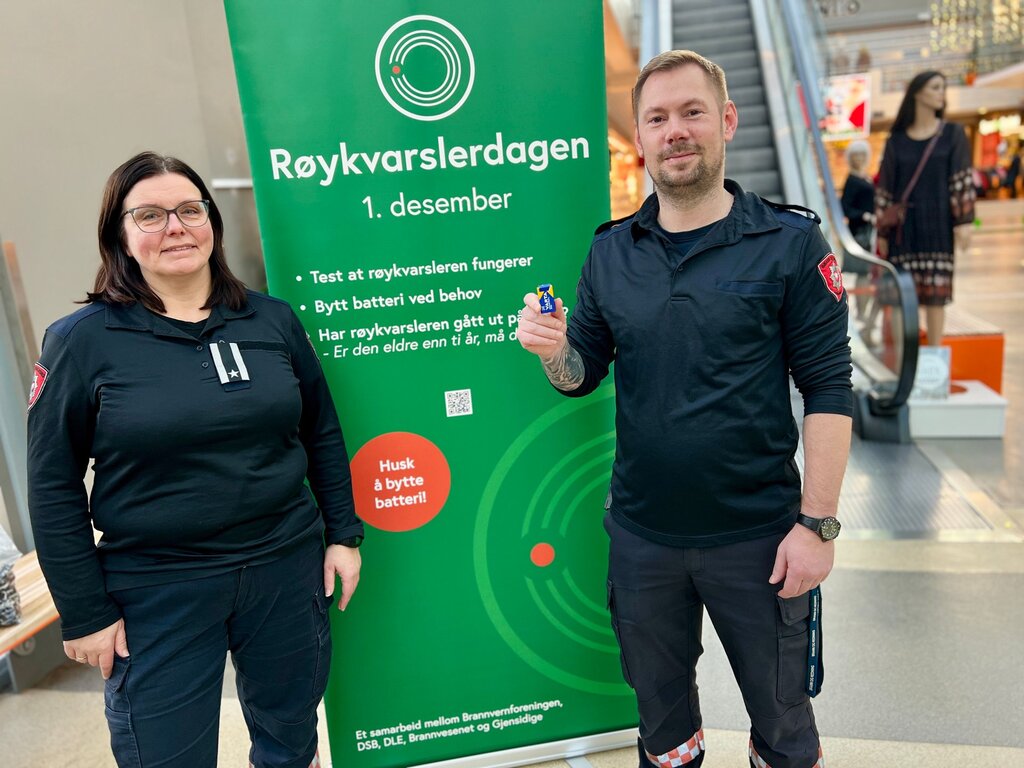 1. des 14:00 1. desember stilte bÄde branningeniÞren og varabrannsjefen pÄ stand pÄ storsenteret og delte ut batteri. (Kvinnheringen 1.7kb)