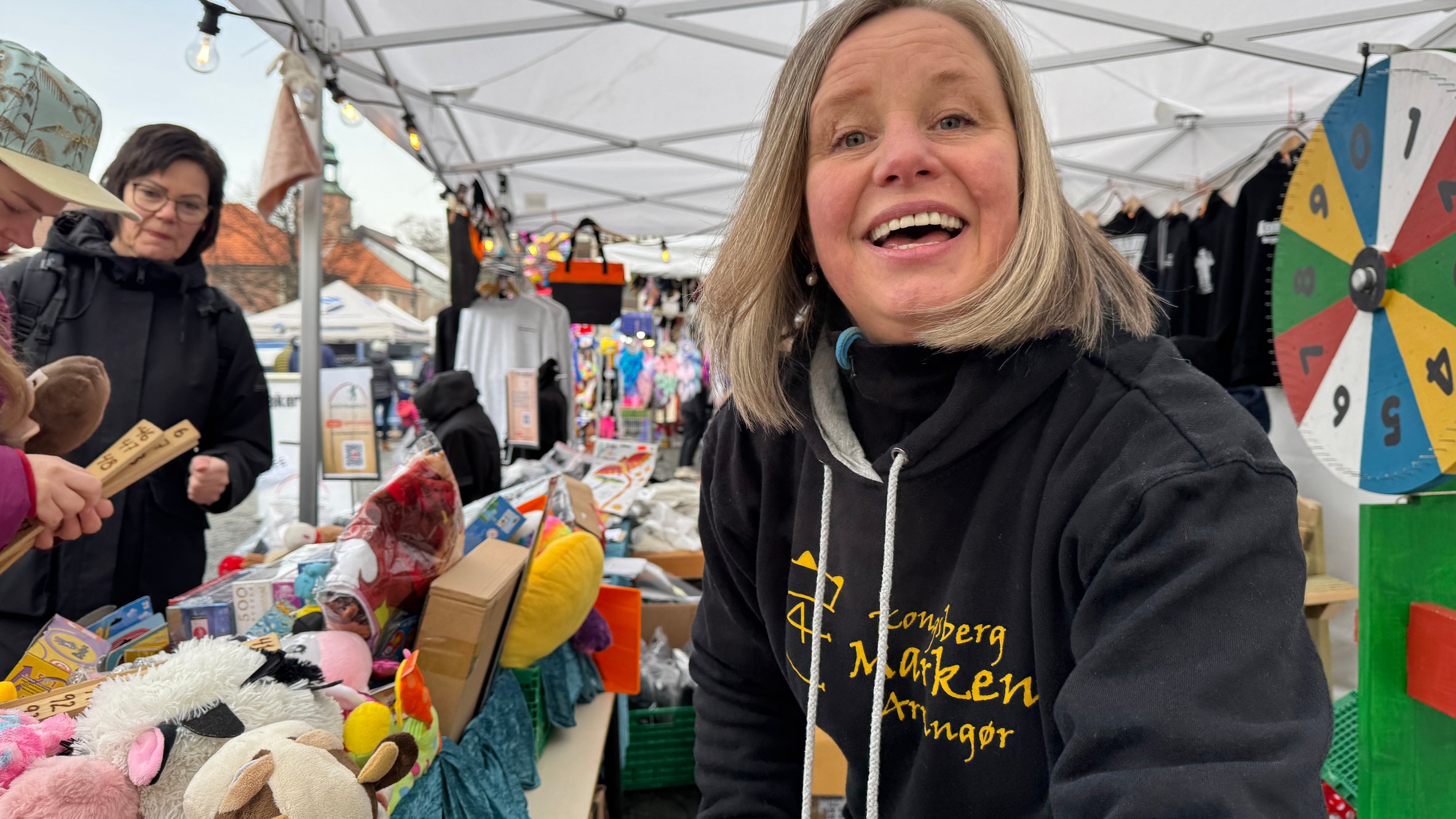 26. feb 15:42 Den er liten, men til stor glede, karusellen på Kongsbergmarken. Torsdag var det full fart på Nytorget den første av tre hele dager med markensmoro. (LP)