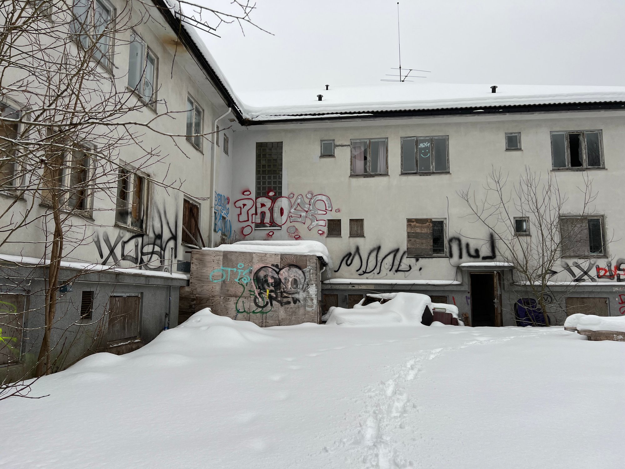 Gamlehjemmet Bjørkebo i Hvittingfoss har stått tomt i mange år. Nå pågår det fortsatt reguleringsarbeid – men før planen kan sluttbehandles, må en ny kvalitetssikring av de geotekniske forholdene på plass.
