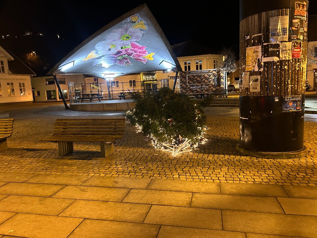 Mandag morgen våknet Flekkefjord nok en gang til at julegranen i Øvre Park er saget ned.