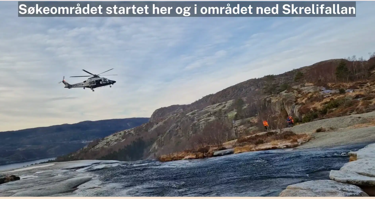 24. des 16:52 Politiet trapper opp leteaksjonen etter en tysk kvinne som er savnet i turområdet Skrelifall vest for Lyngdal. (Lyngdals Avis 287b)