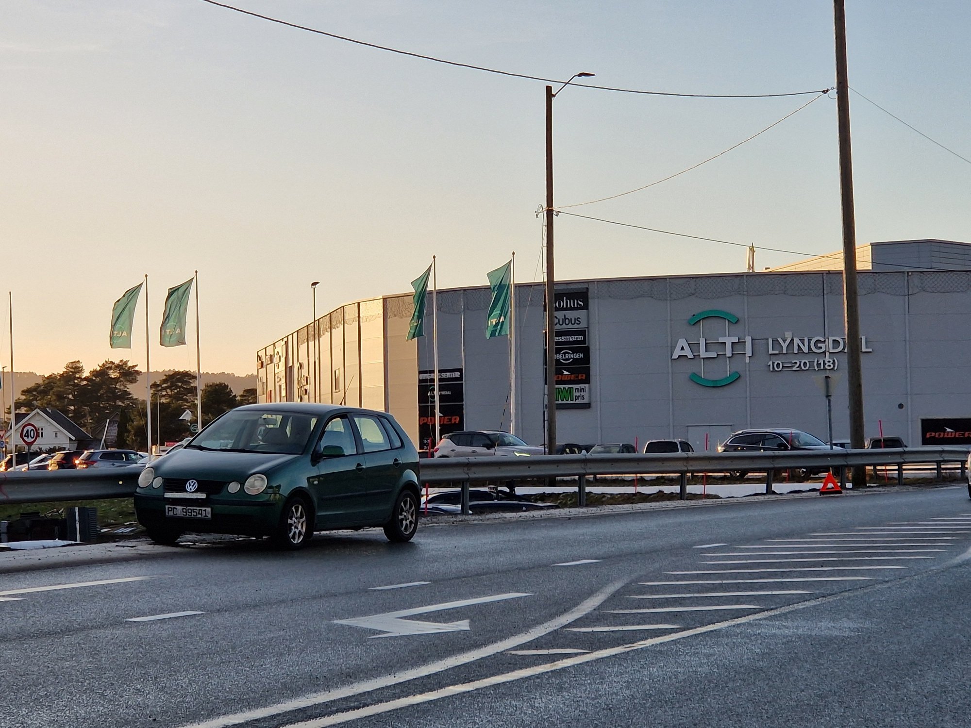 27. des 13:11 En bil har fått stans og står delvis i veibanen på Gamle E39 i Handelsparken på Rom i Lyngdal. (Lyngdals Avis 170b)