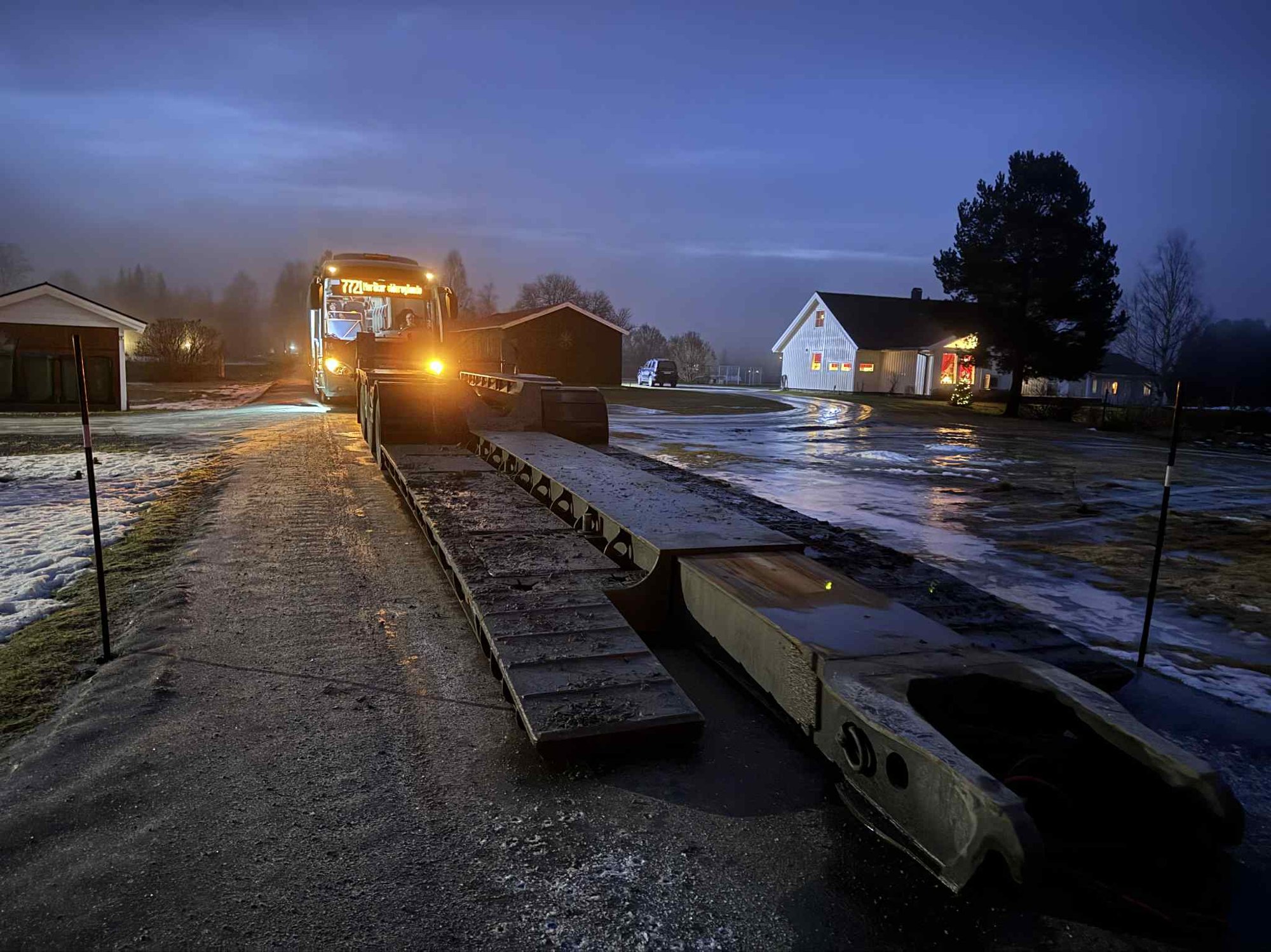 I morges ble skolebussen forhindret fra Ă„ kjĂžre videre pĂ„ ruta da den kjĂžrte pĂ„ Egga, der sto det nemlig en lastebilhenger midt i veien â og dermed tikket minuttene for bussjĂ„fĂžren og de fire skolebarna som allerede satt pĂ„ bussen.