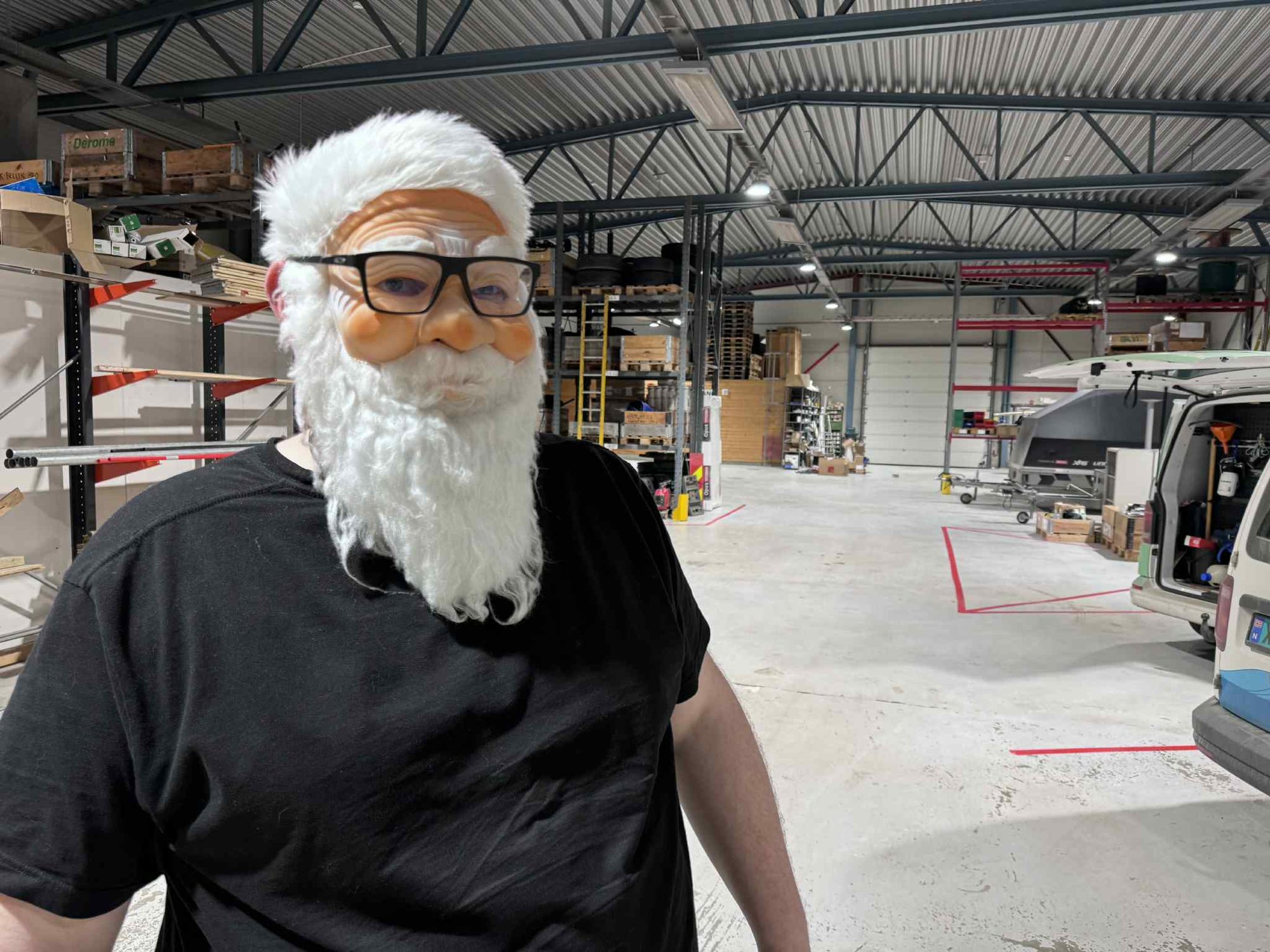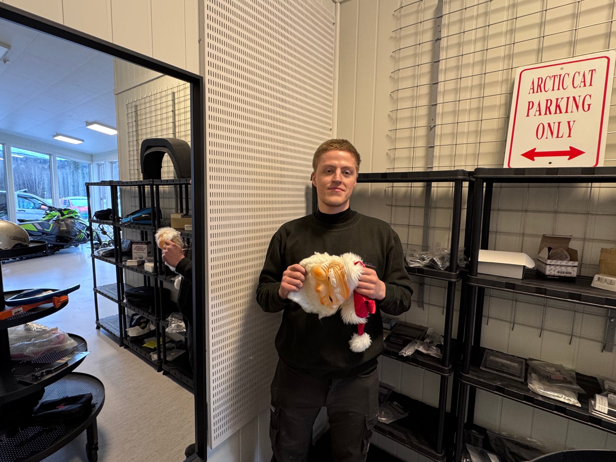 I dag var det daglig leder ved MerÄker Bil og Fritid, Sander AlmÄs, vi hadde gjemt under nissemaska i speilet. FÞrste jula med datteren Ellie (3) har lagt seg som det beste juleminne for den daglige lederen og formannskapsmedlemmet.