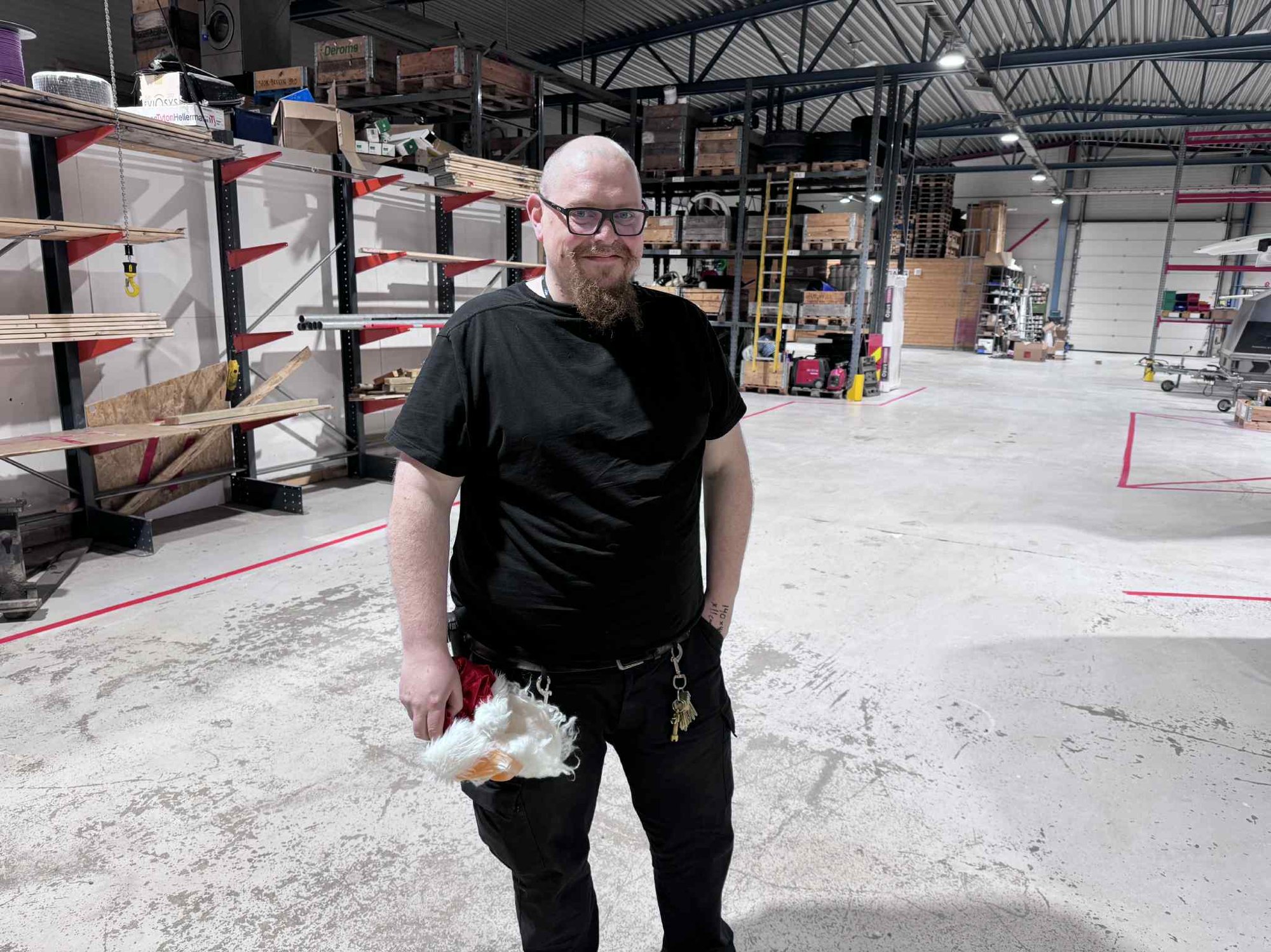 I dag var det Fides sin faste ved-pakker, Tonny Bergquist, som gjemte seg bak maska. «Vedkaillen» liker alt som hÞrer jula til.