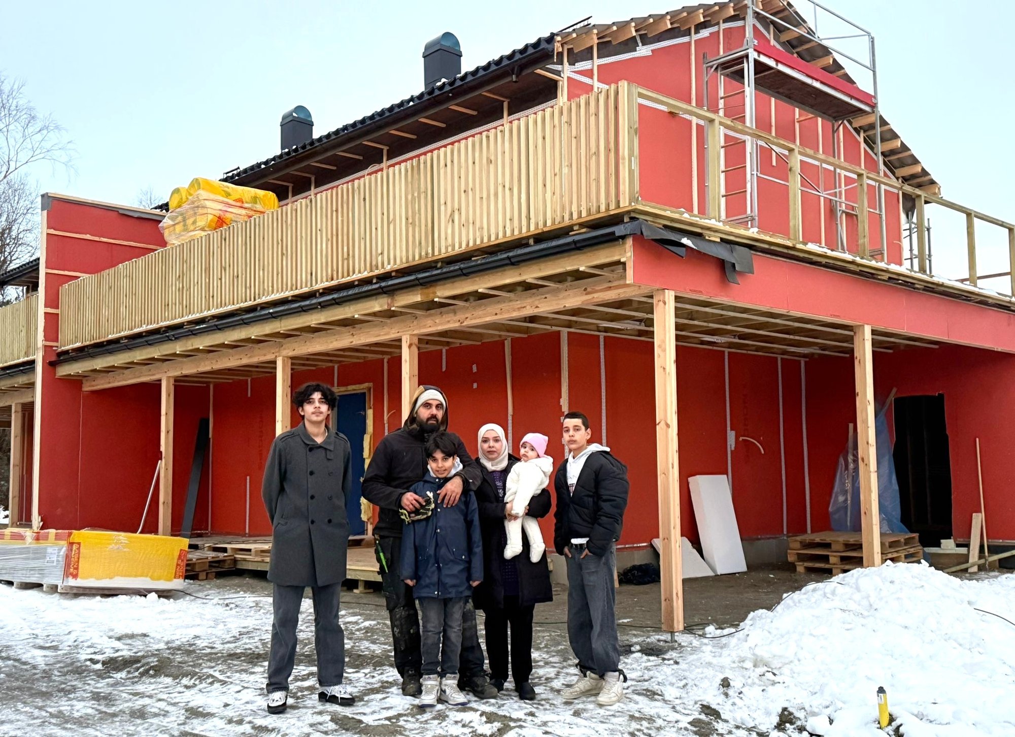 Issam Naameh (42) er kjempeglad for at tak og vegger er på plass på det nye huset i Funnosmoen nå i slutten av november – før vinteren setter inn for fullt. Til våren blir det innflytting.