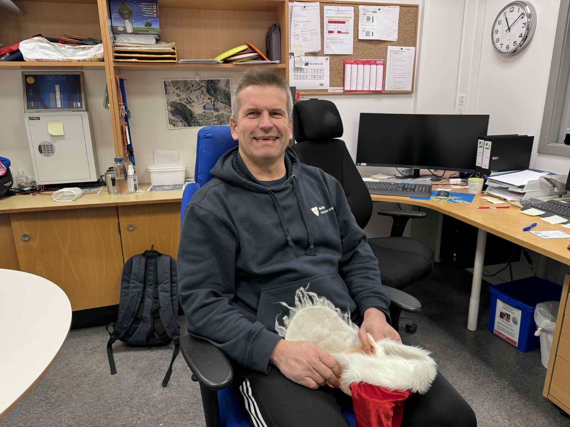 Synes du dagens nissetipp var litt vanskelig? Det var kanskje ikke så rart fordi lærer Tom Erik Henden lurte seg inn på «vaktmesternes» kontor da vi gjemte han under nissemaska ved Meråker videregående – og læreren humra godt under maska.