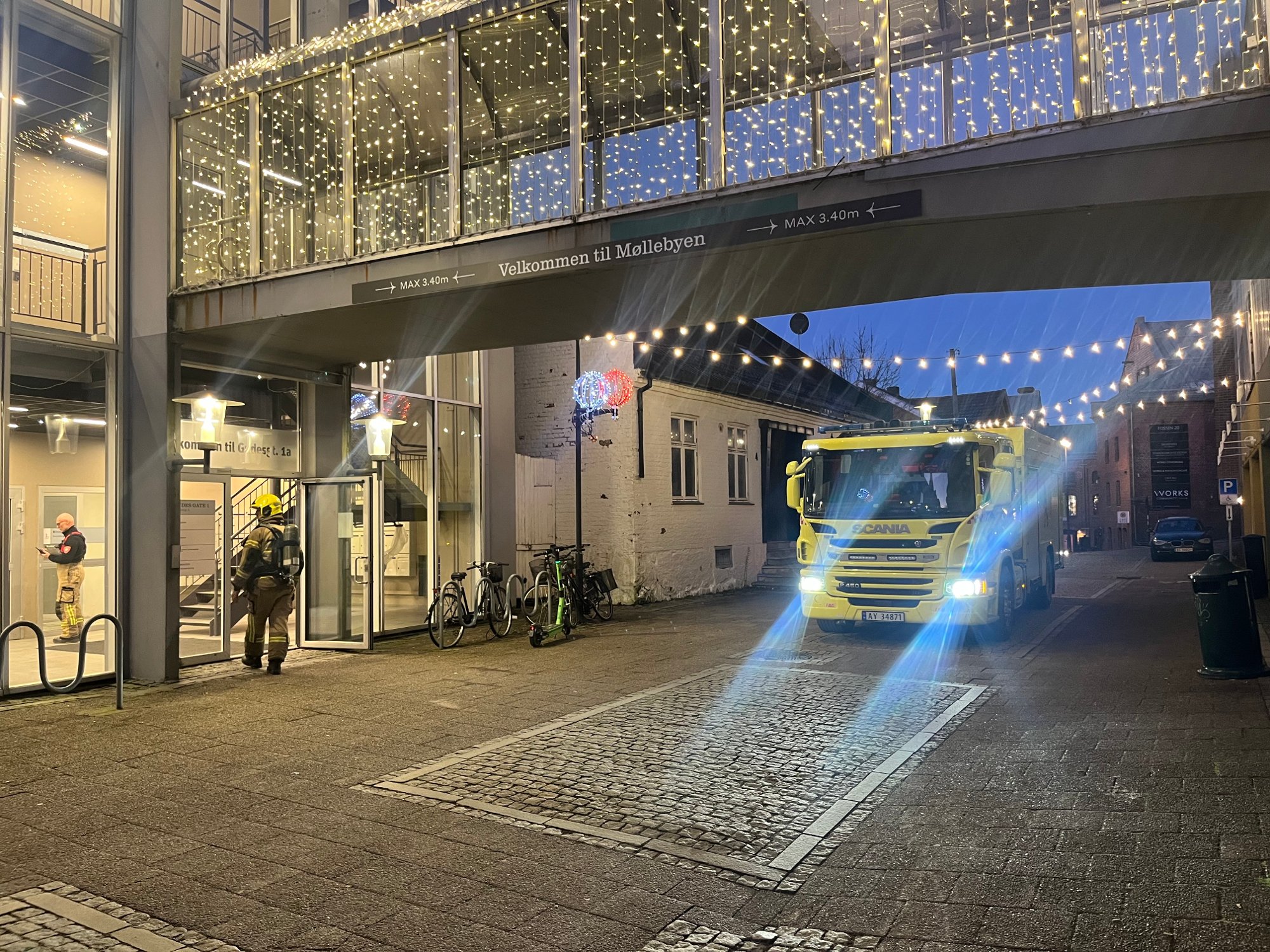 Brannvesenet rykket 15.55 ut til sentrum.