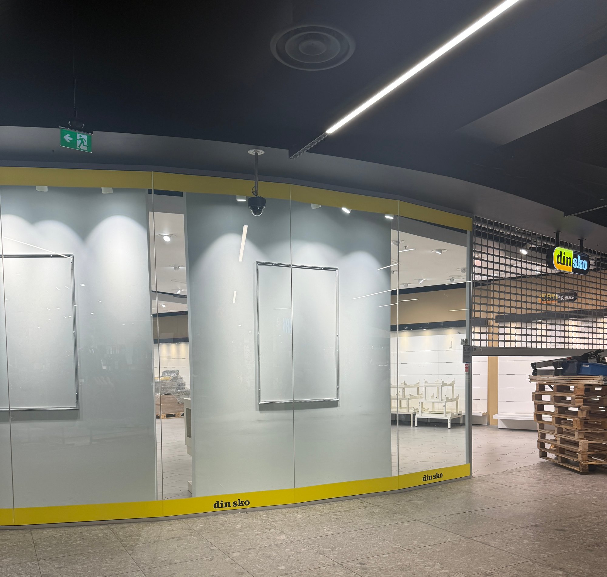 Moss Avis fikk fredag ettermiddag tips om at gitteret var nede foran Din Sko pÄ Amfi Moss. Butikken var ogsÄ tÞmt for varer.