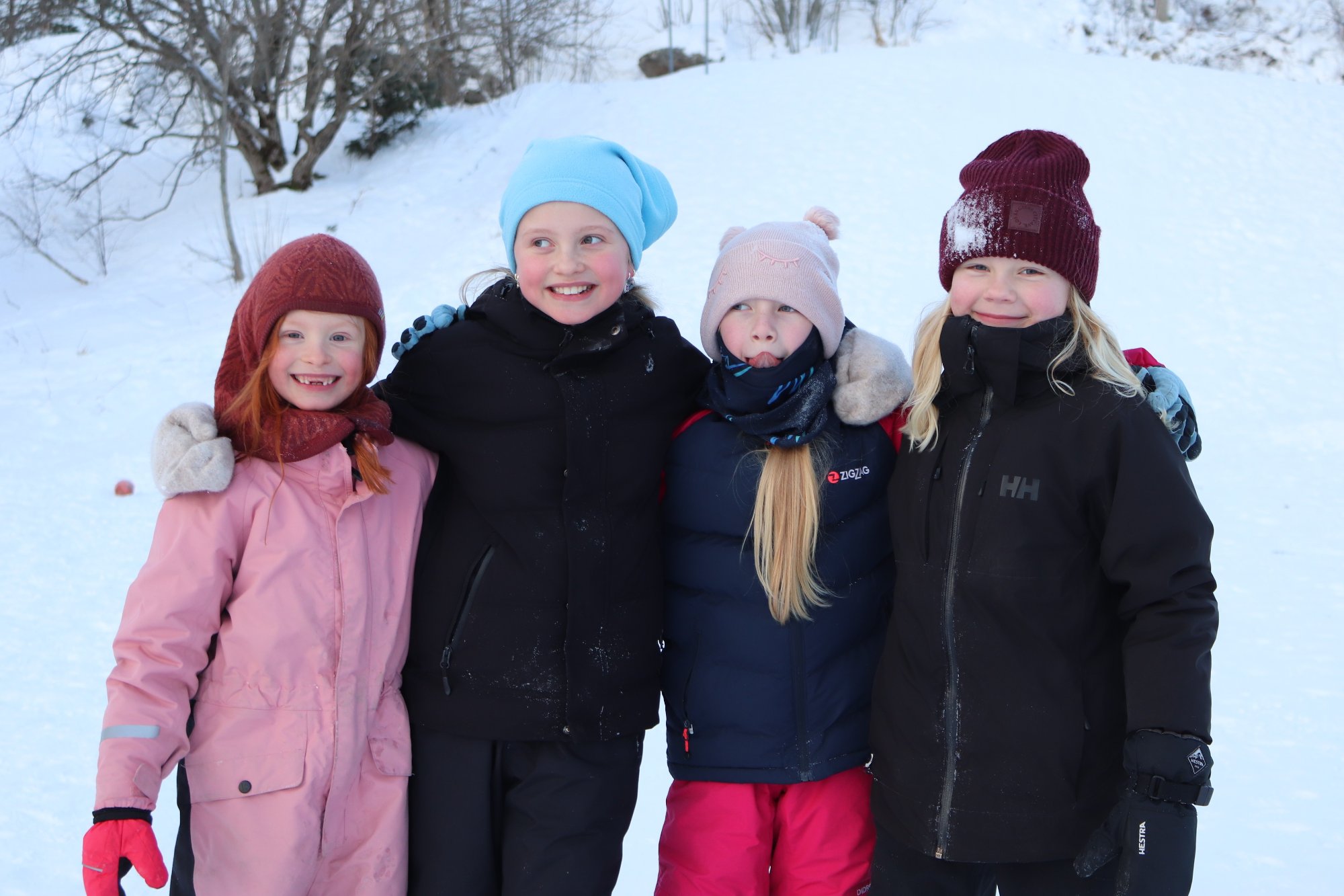 Oda (6), Eva (9), Thea Elise (9) og Lotta (9) sier ikke nei til en runde i akebakken: â GĂžy Ă„ vĂŠre her