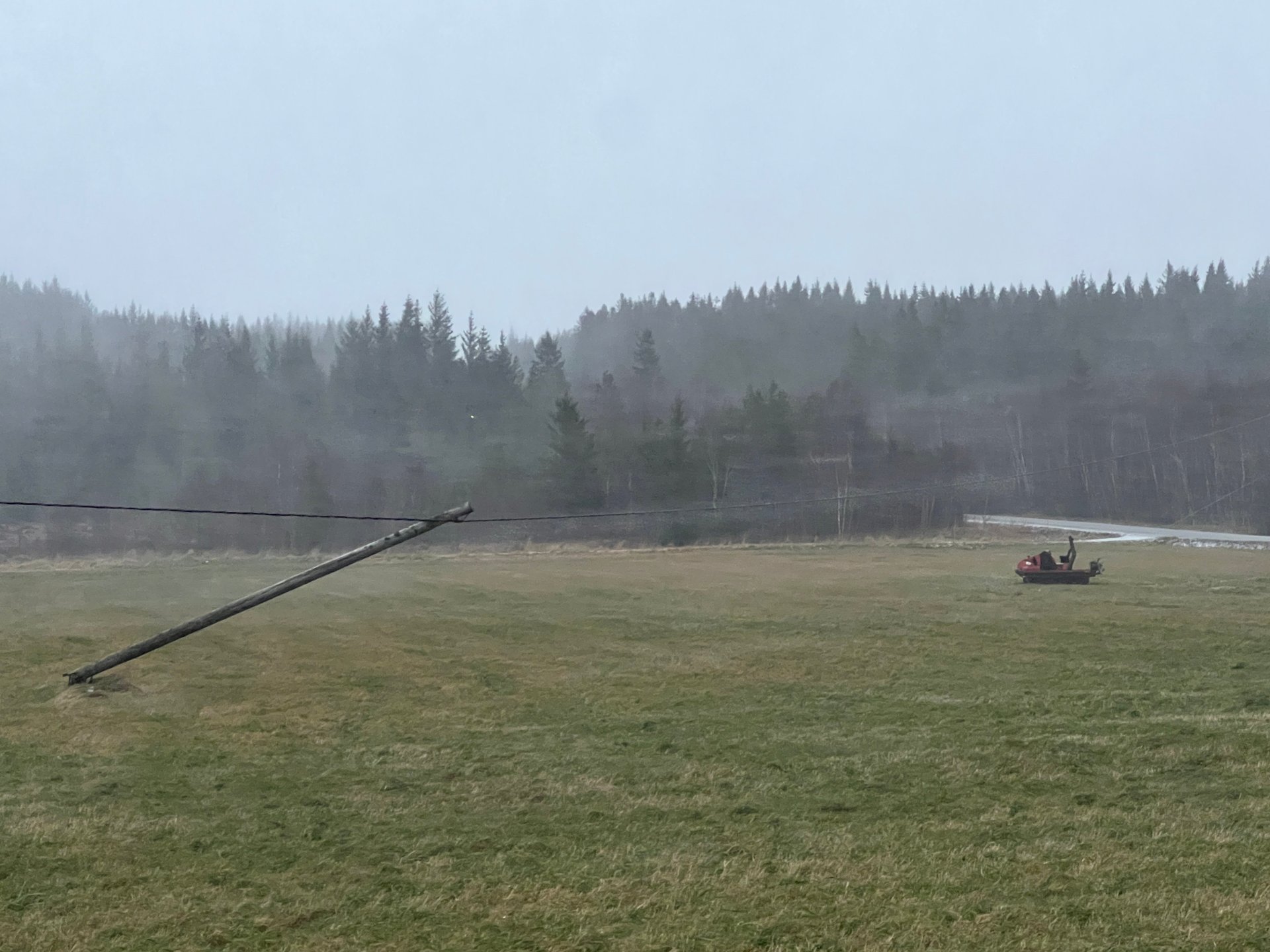 Et gult farevarsel for storm og kraftige vindkast preger Namdalen, og uvÊret har allerede begynt Ä skape problemer pÄ fylkesvegene.