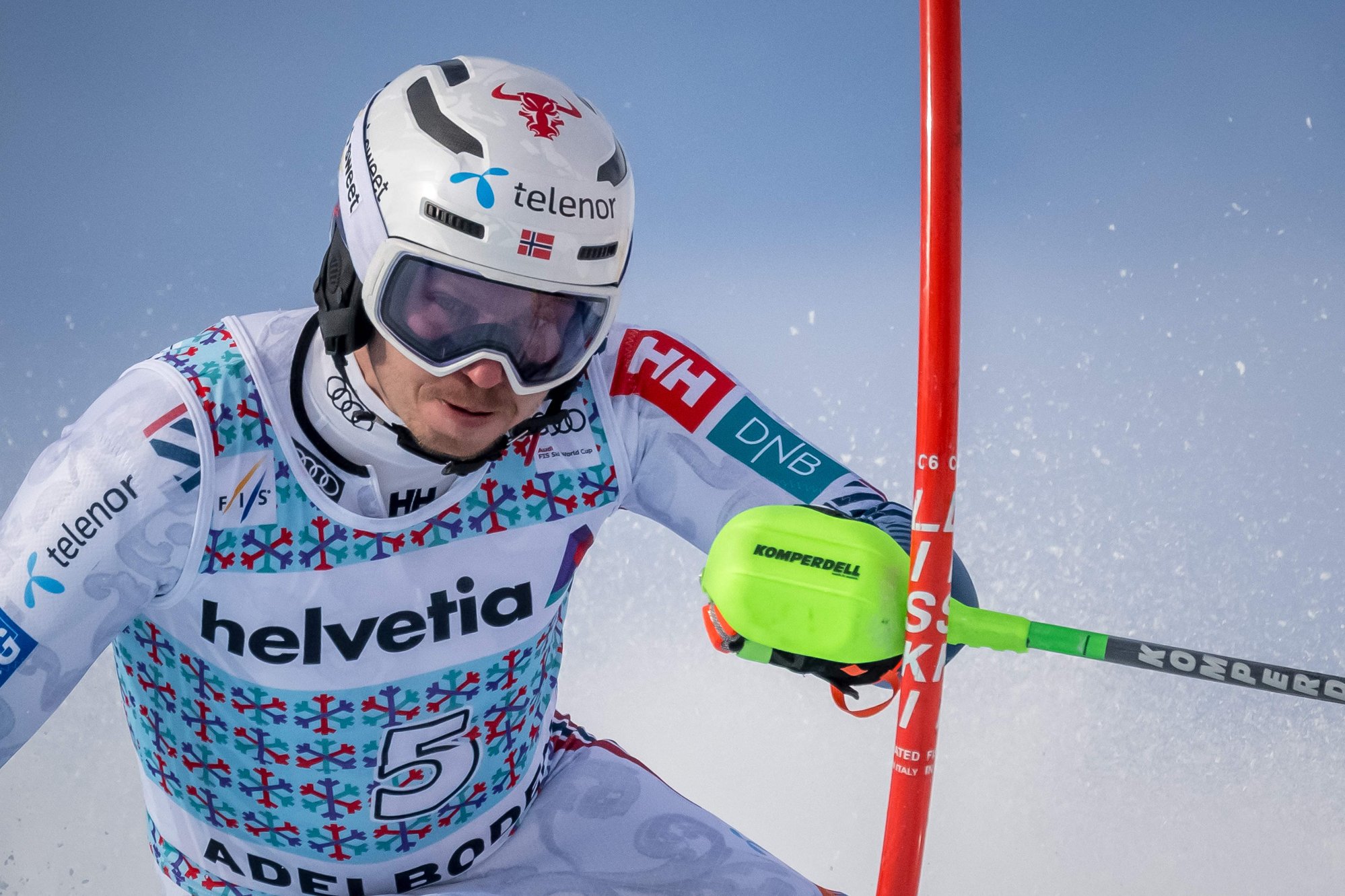 Nordmannen ristet pÄ hodet, selv om han leder slalÄmrennet i Adelboden.