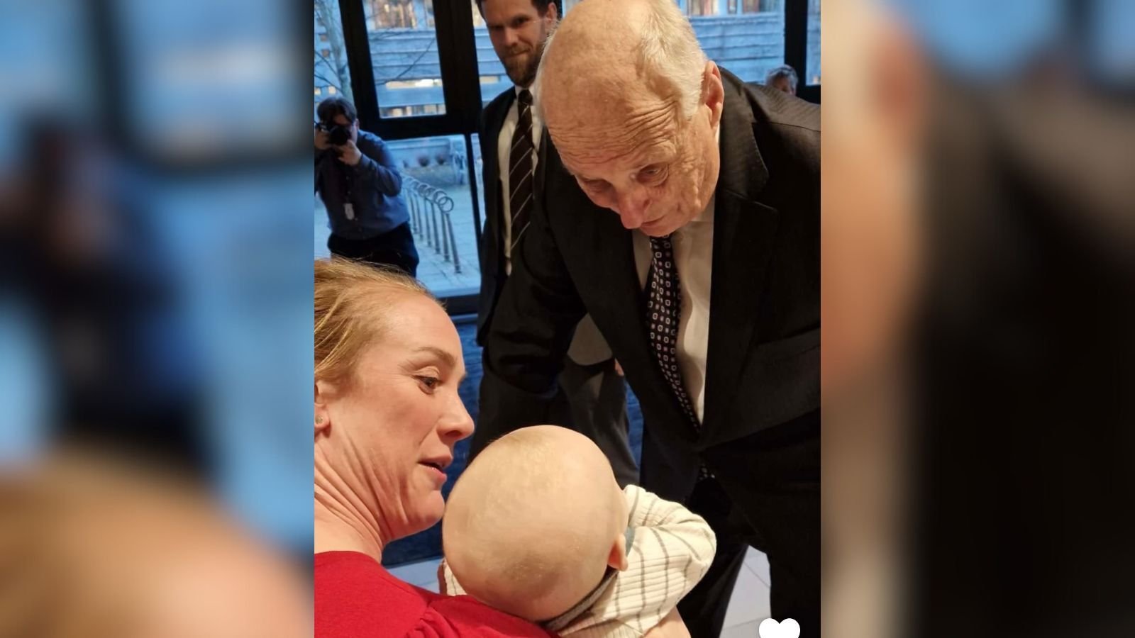 Birgit Skarstein og sĂžnnen fikk et varmt mĂžte med kong Harald.