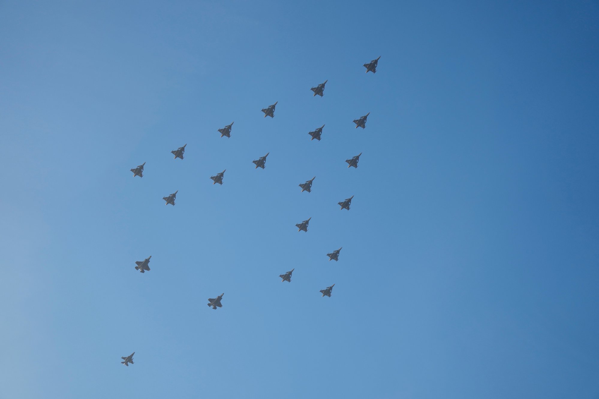 16. des 15:49 Tirsdag ettermiddag flĂžy svenske og danske jagerfly i juletreformasjon over KĂžbenhavn og Ăresund. (Nettavisen 635b)