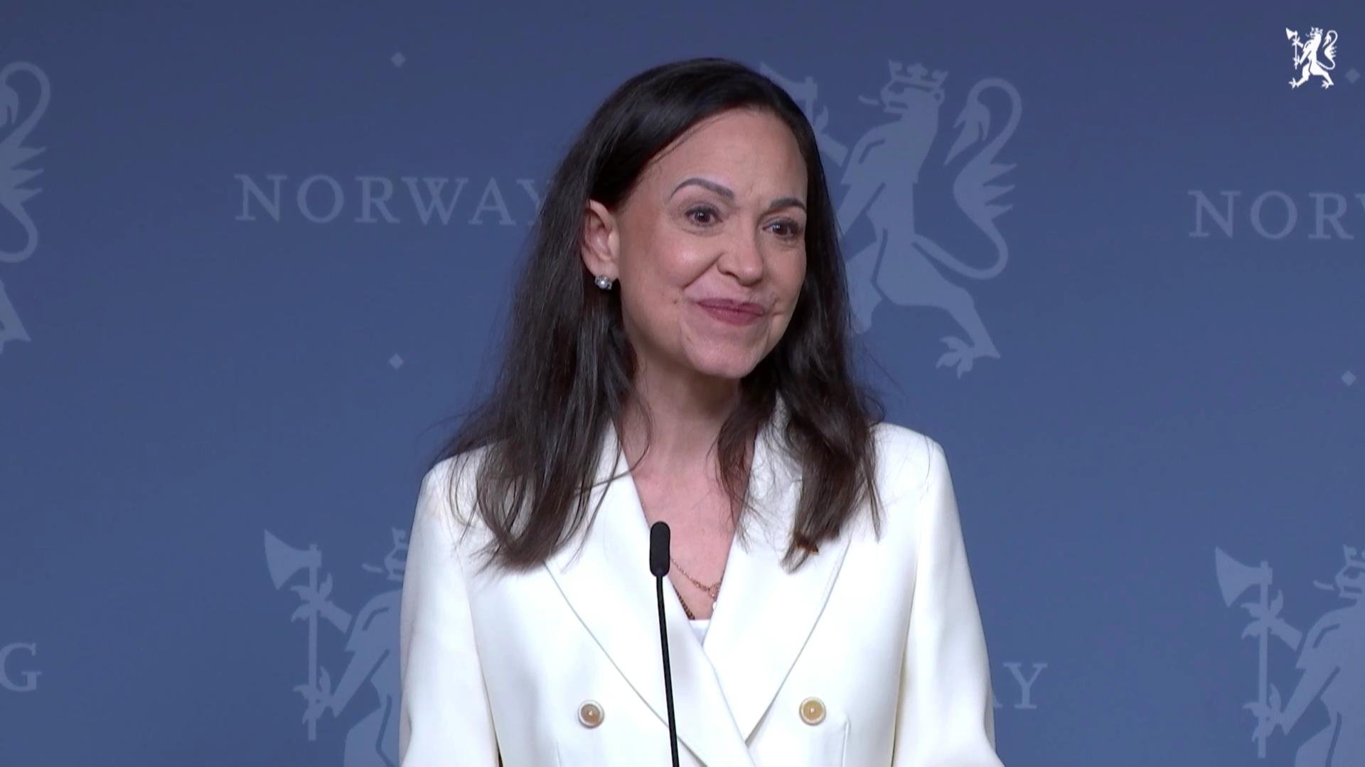 Statsminister Jonas Gahr StĂžre (Ap) holder felles pressekonferanse med den venezuelanske fredsprisvinneren Maria Corina Machado torsdag formiddag.