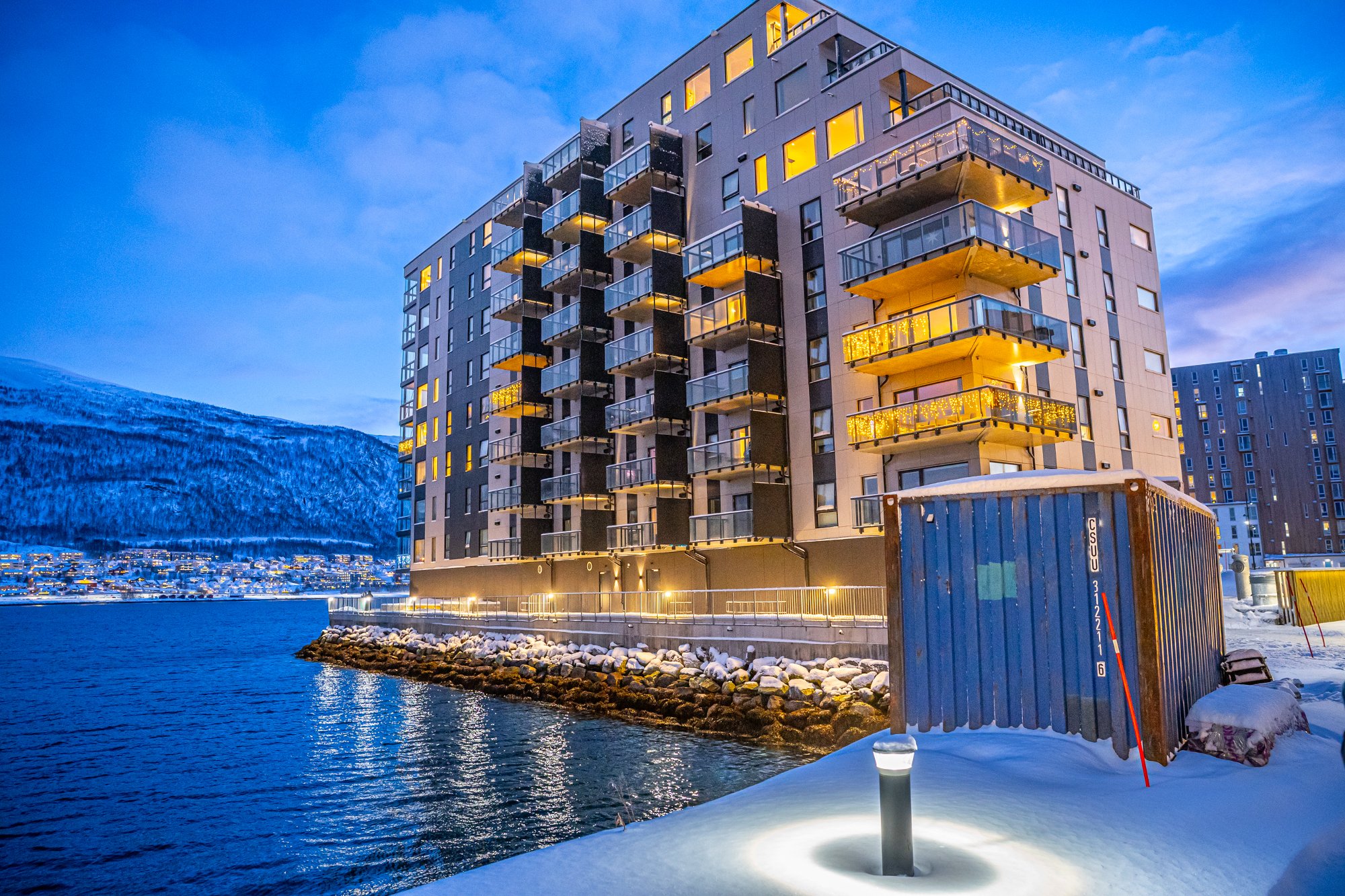 21. des 11:00 Ketil HĂžegh og Tonje Fiskaa HĂžegh har sikret seg god utsikt fra terrassene i sin nye bolig - og kort vei til jobb for den ene av dem. (Nordlys 228b)