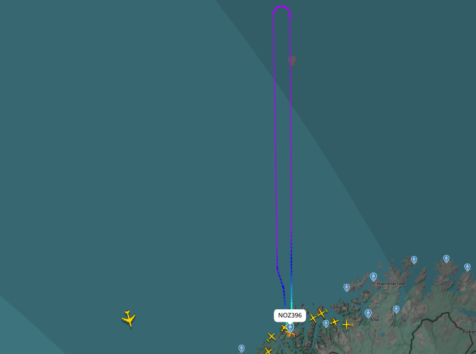 19. jan 15:04 Flyet var godt over halvveis før det til slutt måtte snu. (Nordlys 137b)