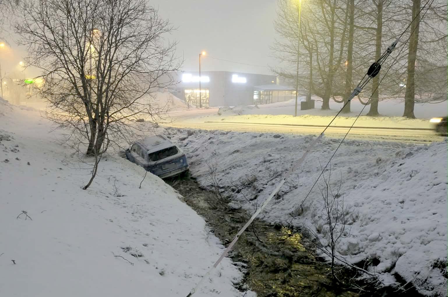 27. des 13:08 En taxi har fått problemer på glatta ned Heilovegen og havnet nede i en dyp grøft. (Nordlys 79b)