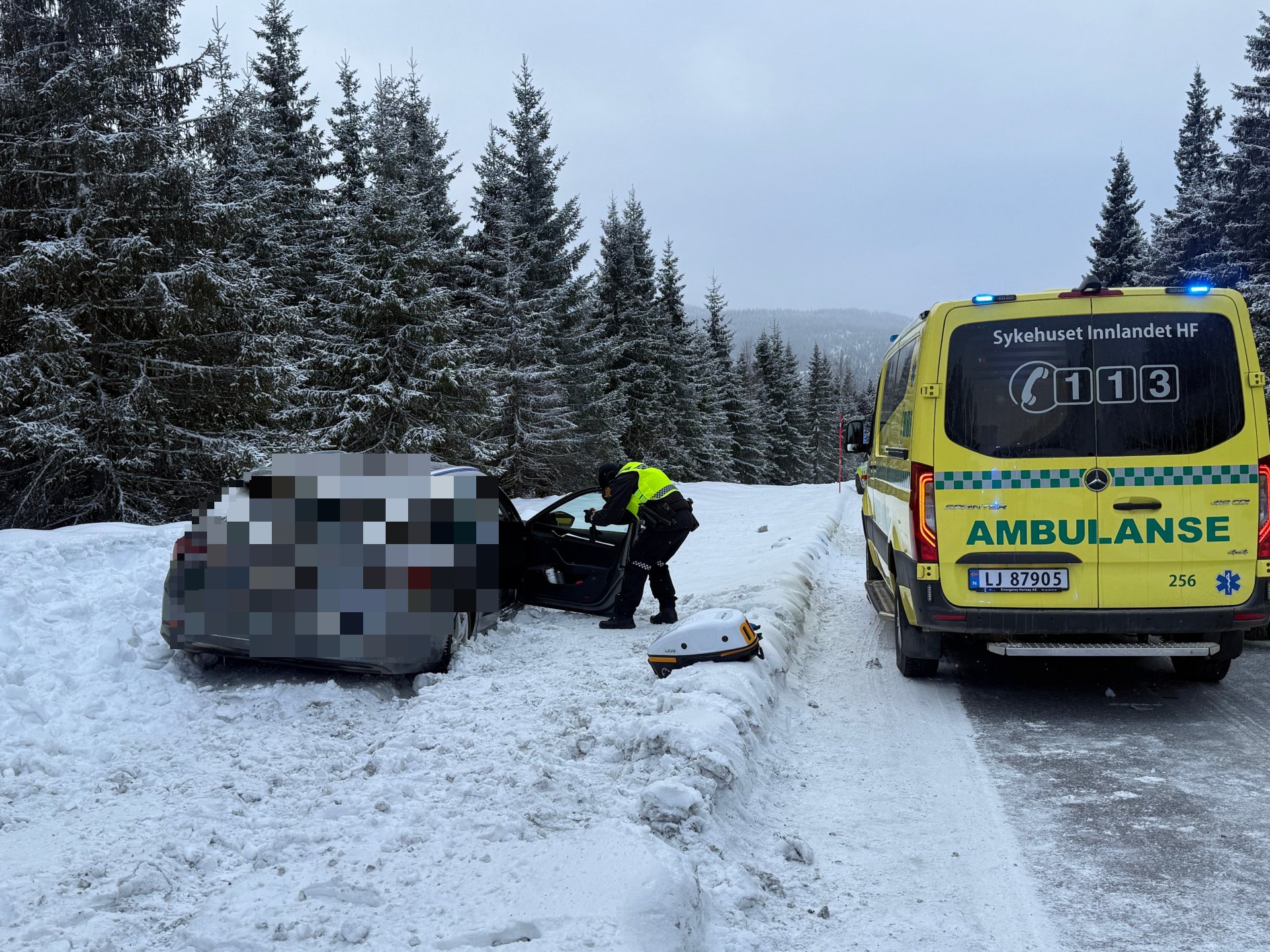 5. jan 11:14 Situasjonen er alvorlig for en bilfører etter utforkjøring langs Vingromsåsen mellom Torpa og Vingrom. (OA 947b)
