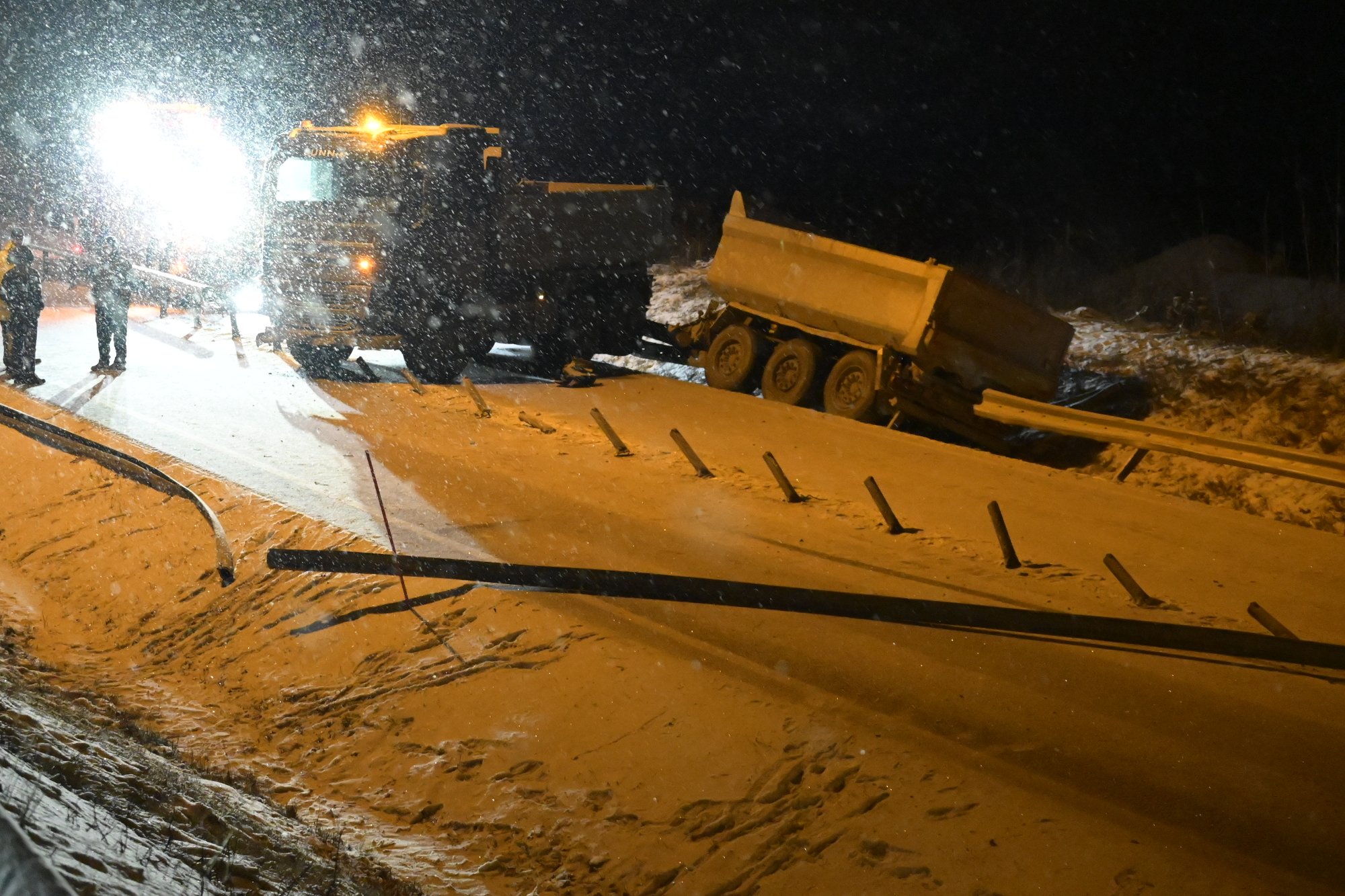 6. jan 18:34 Vegtrafikksentralen varsler at minst tre kvelder og netter er satt av til å fikse rekkverk og midtdeler etter ulykken på E6. (OA 197b)