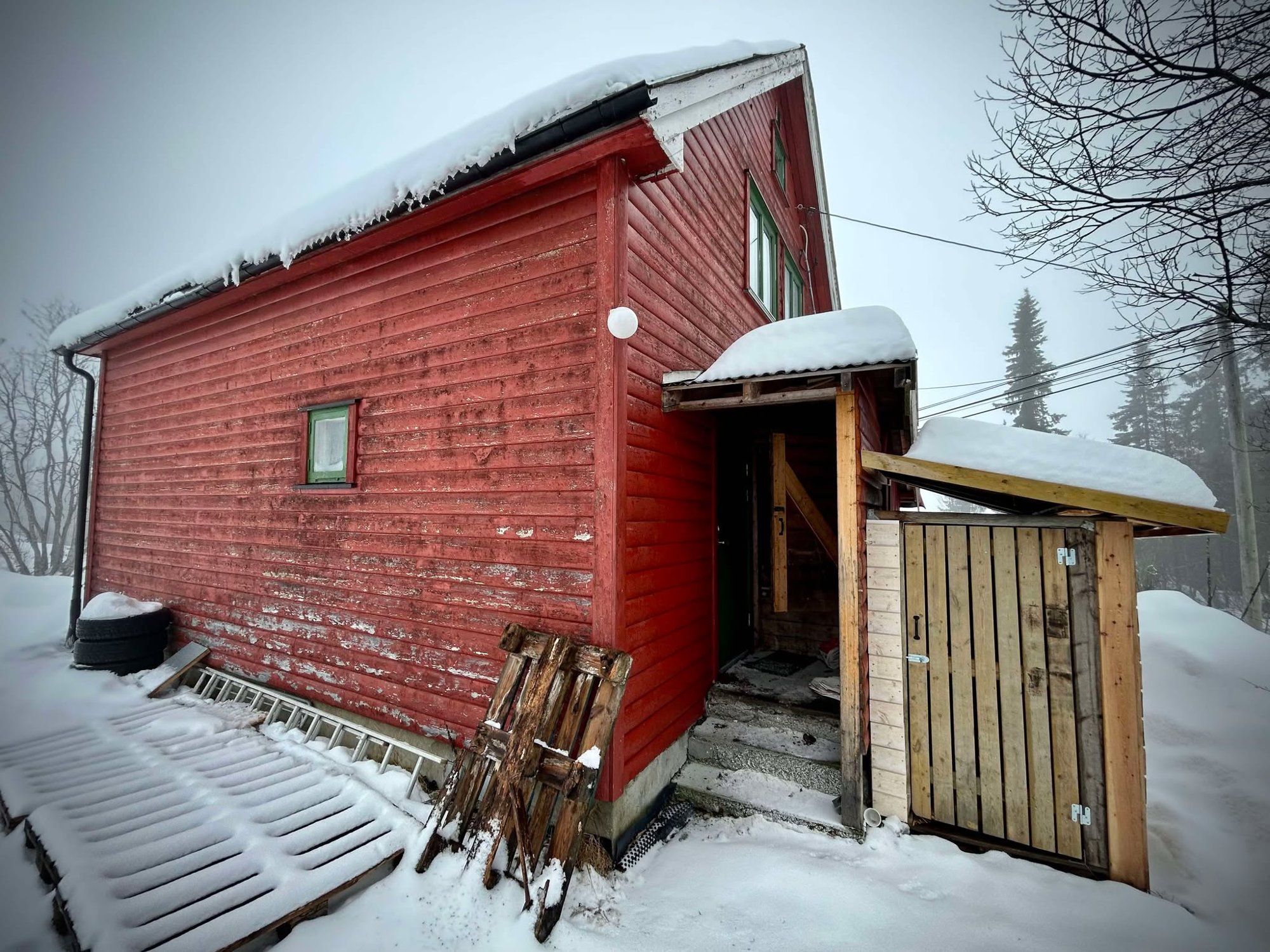 Stoppet på toppen av skrenten over huset. Mener det kunne gått mye verre.