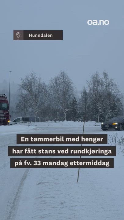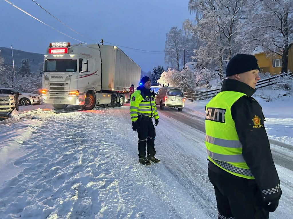 12. jan 18:49 Mandag kveld er det meldt om et vogntog med stans like sør for Raufoss. (OA 165b)