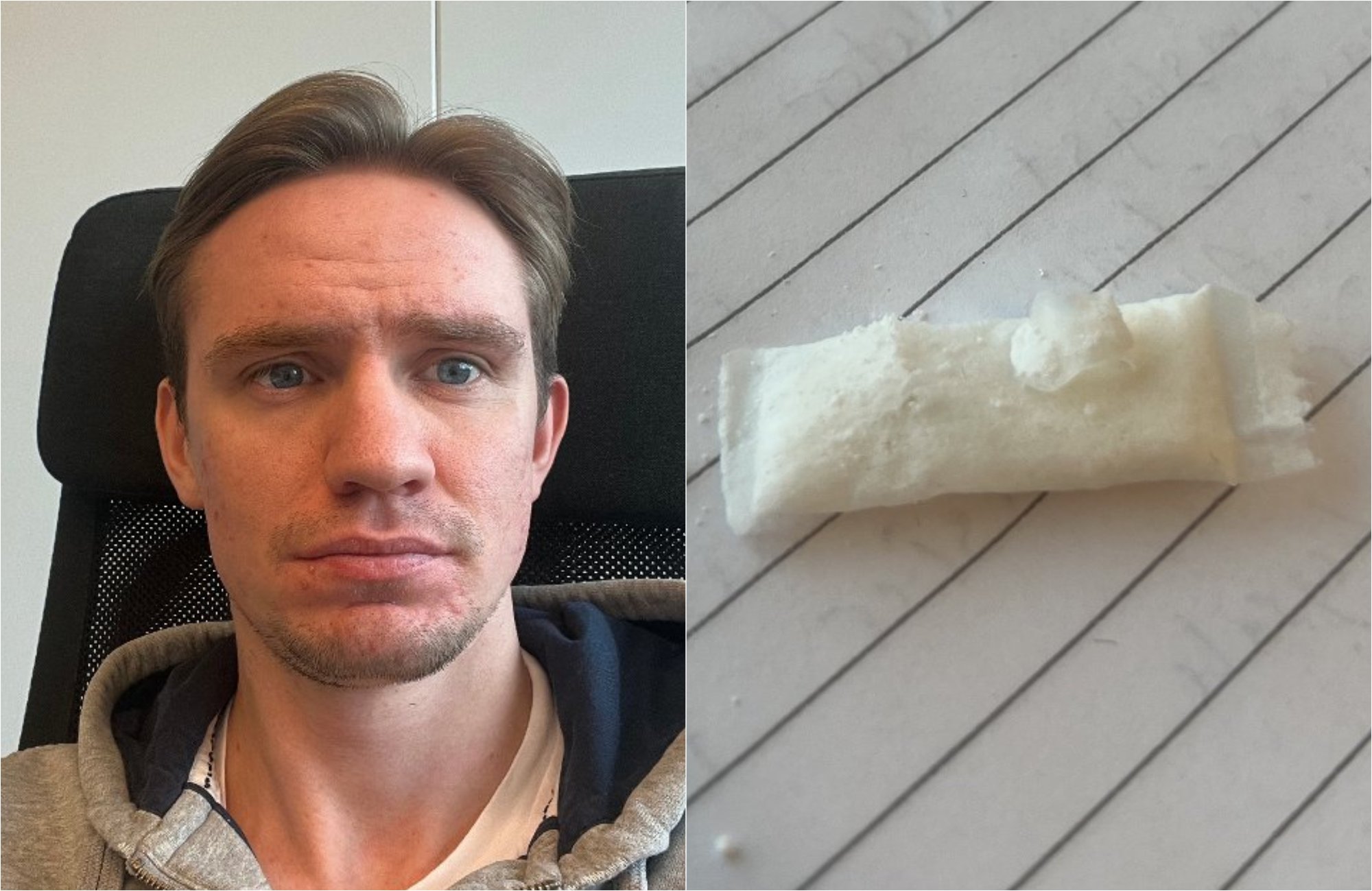 Mathias Oseland fikk seg en ubehagelig overraskelse da han skulle ta en snus pÄ jobb.