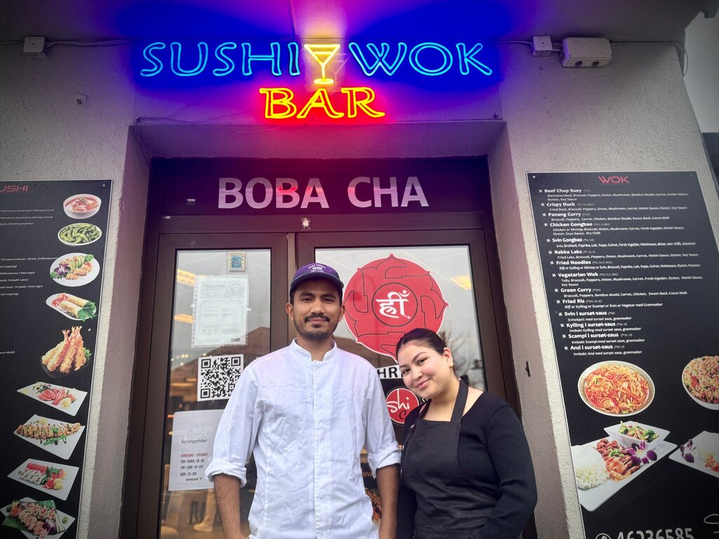 Anoj Karki (30) og Manju Battarai (27) Þnsker velkommen til gjenÄpnede Hrim Sushi i TriangelgÄrden.