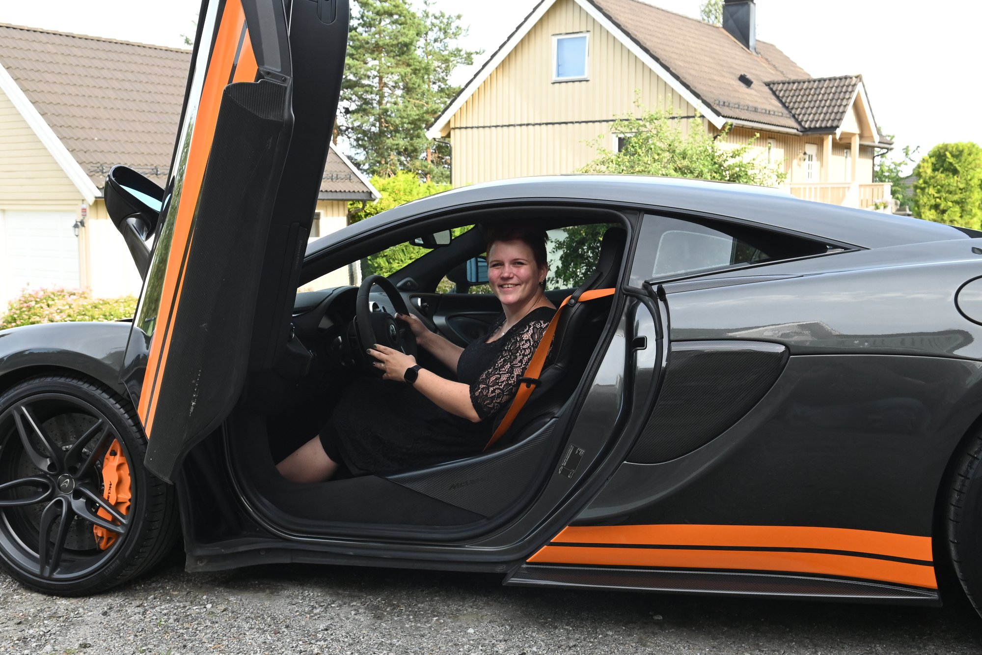 Det er ikke bare bilfrelste som snur pÄ hodet nÄr Trine Anette Bratland (35) kommer kjÞrende. Hun har hatt bÄde Lamborghini, BMW og Audi, og det siste tilskuddet er en McLaren.