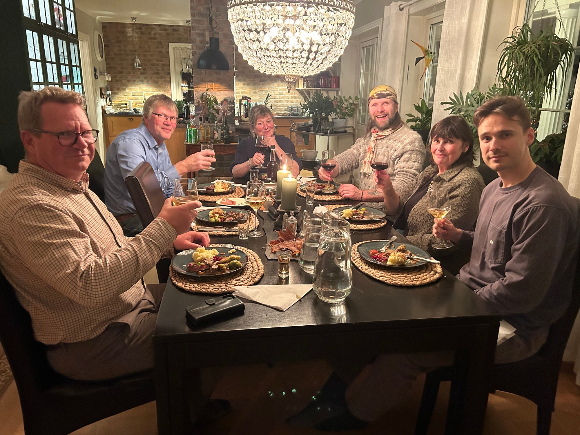BjĂžrg Stumberg og Kjersti Asak Pedersen fikk middagsbesĂžk av Aune Sand og hans sĂžnn Andrey Sand lĂžrdag kveld.
