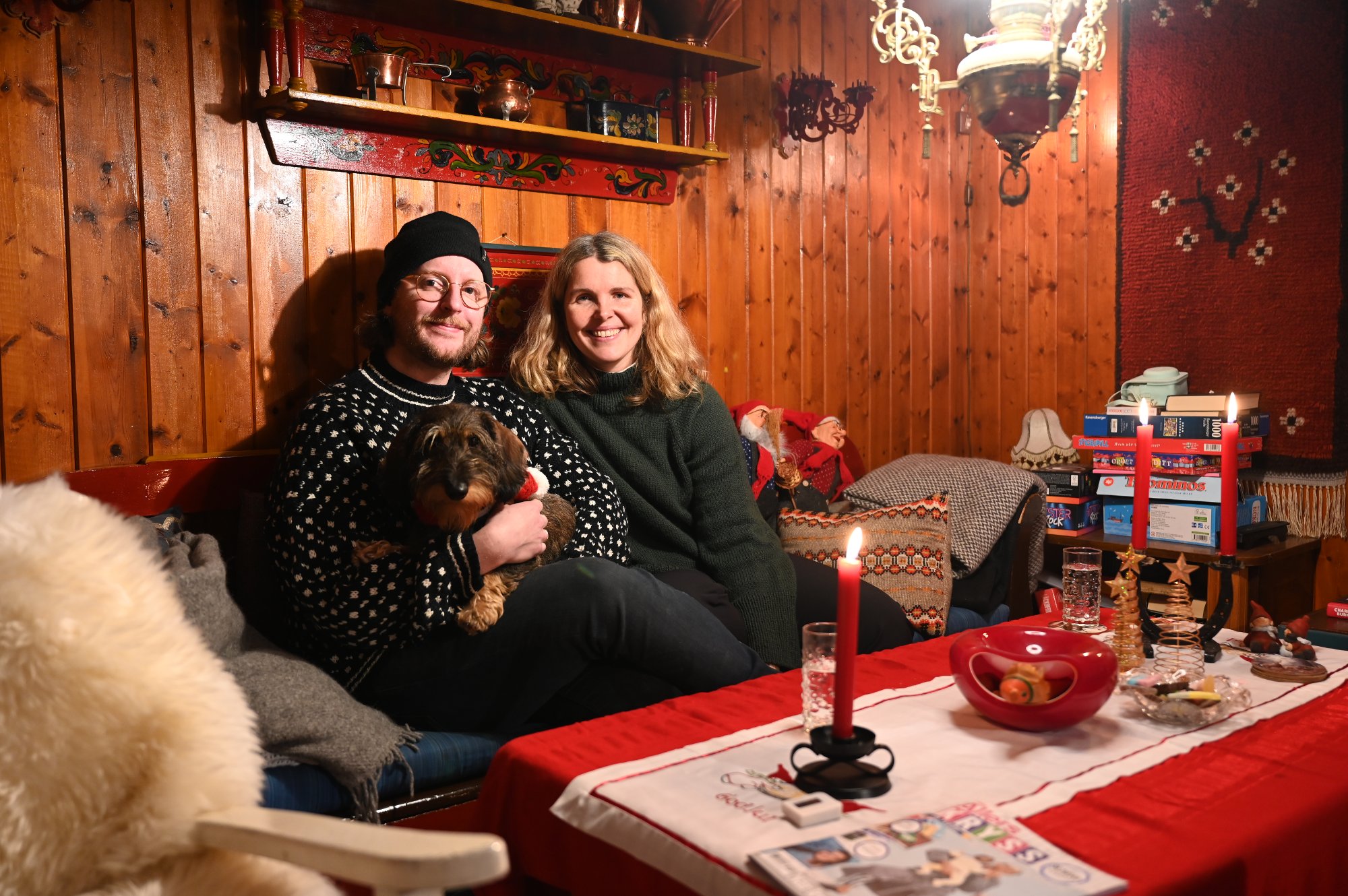 Med hunden Godzilla pÄ fanget, fyr pÄ peisen, et glass jura-vin og sopprisotto, senket nyttÄrsfreden seg for Sabine og Christopher. De sa farvel til hovedstaden og fant stillheten i Nes