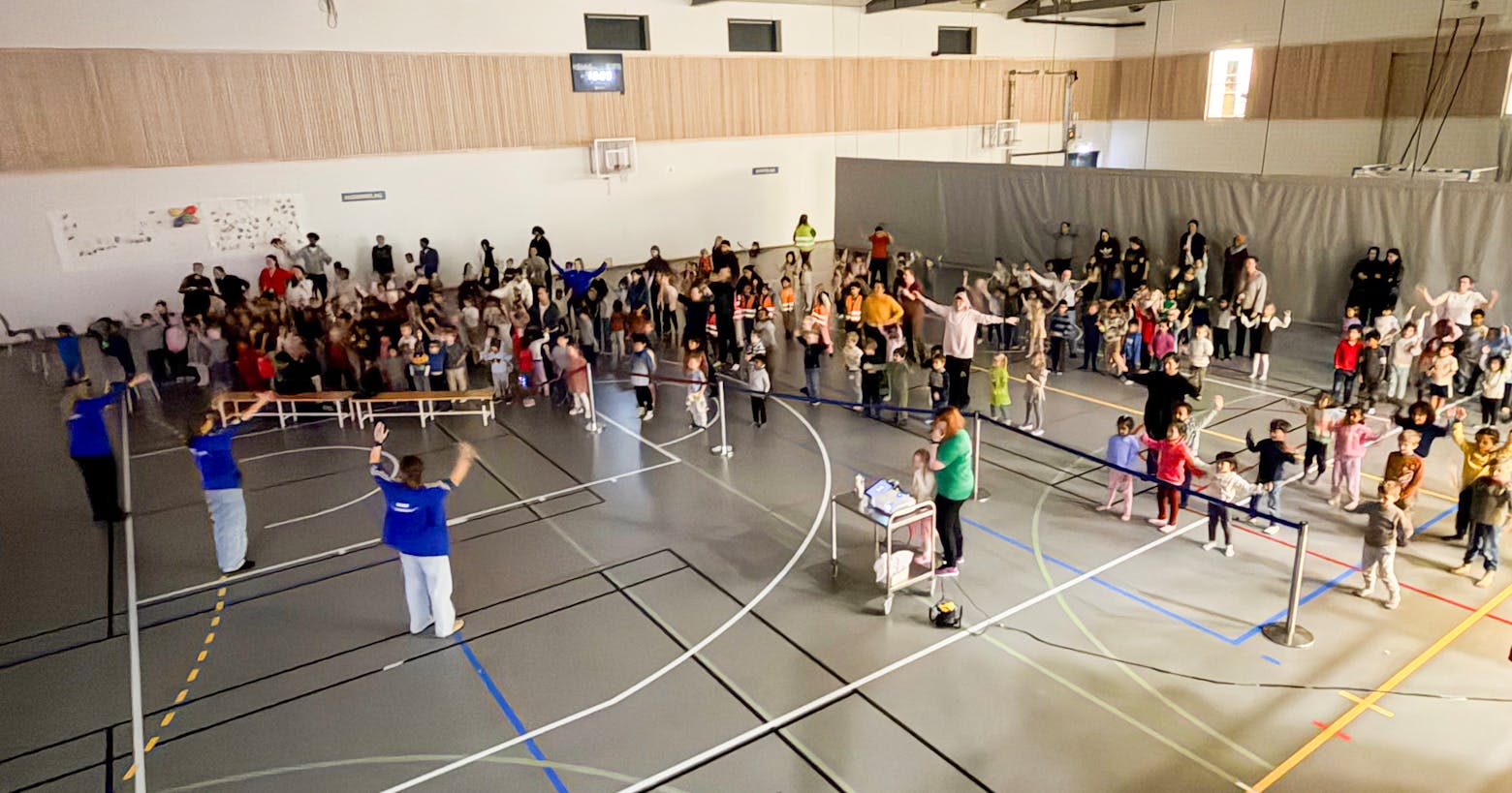 Grorud Idrettsbarnehage inviterte alle femÄringene i bydel Grorud til felles BlimE-dans i flerbrukshuset. MÄlet er at barna skal bli kjent pÄ tvers av barnehagene fÞr de mÞtes igjen som skoleelever til hÞsten.