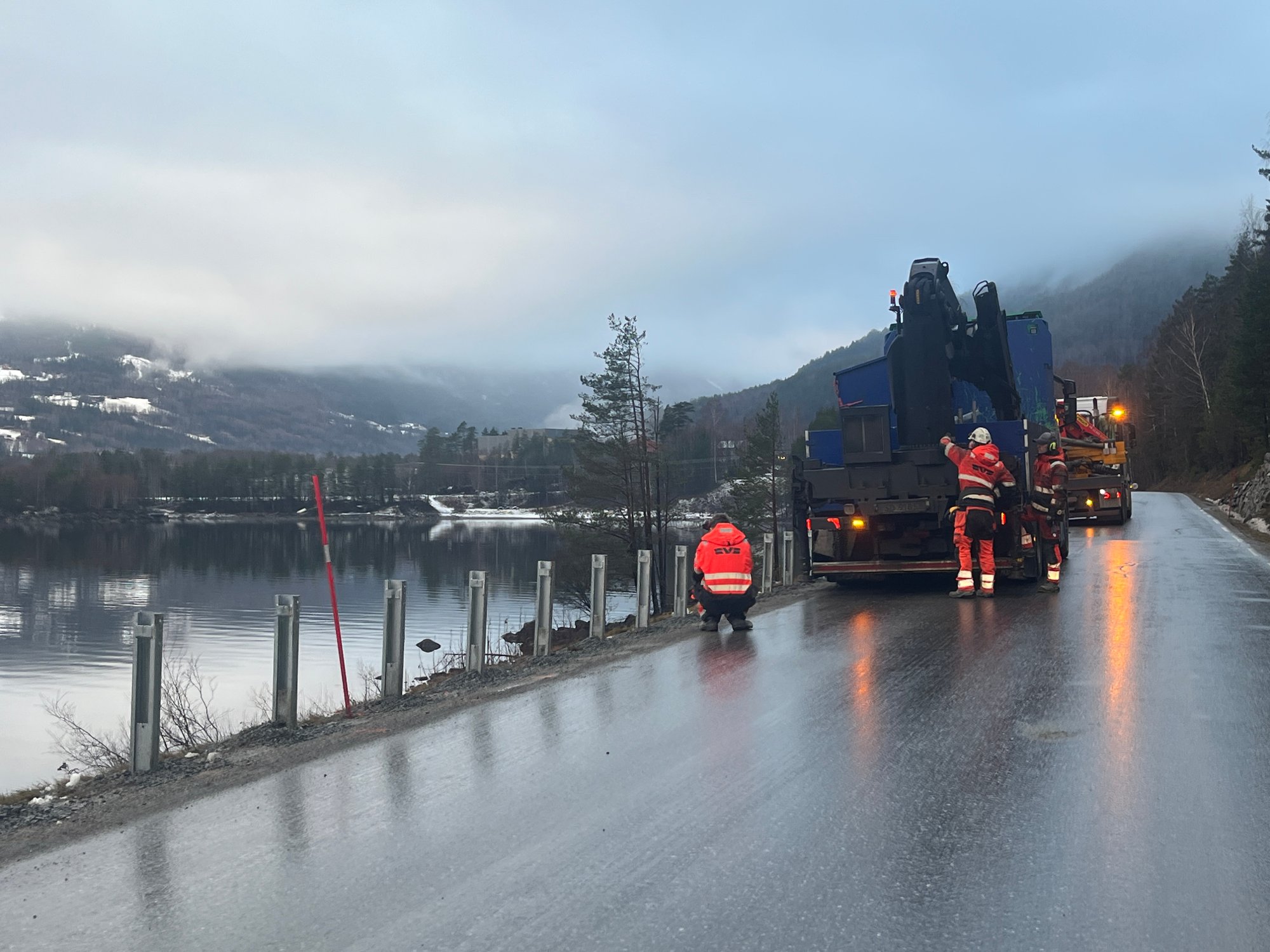 Klokka 13.04 kom det melding om en bil som har kjørt ut av veibanen på Tinnsjøveien i Gransherad.