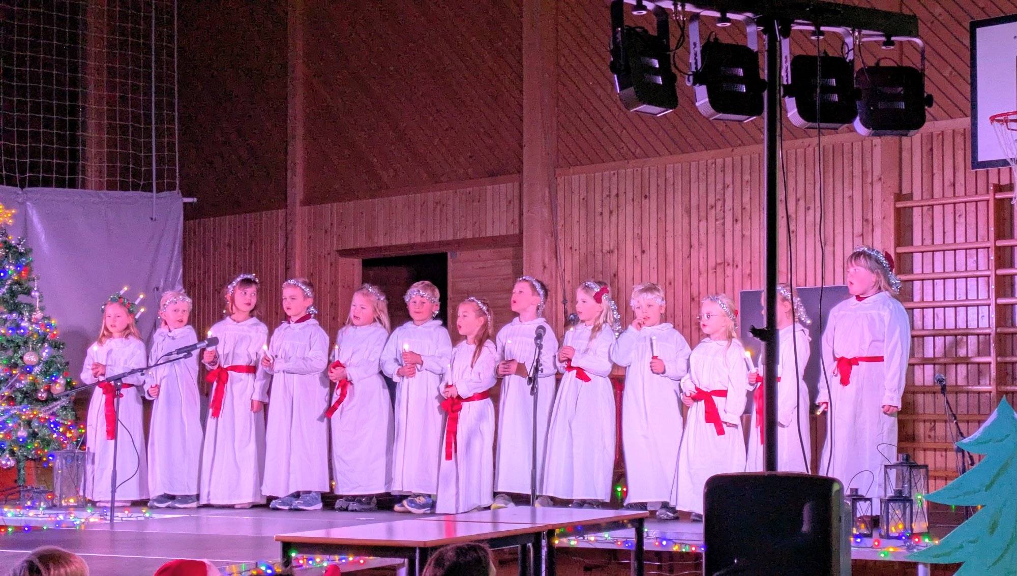 13. des 18:00 Ivrige barn fra 1.til 7. trinn på Atrå barne- og ungdomsskole viste sine talenter foran en fullsatt sal. (Rjukan Arbeiderblad 275b)