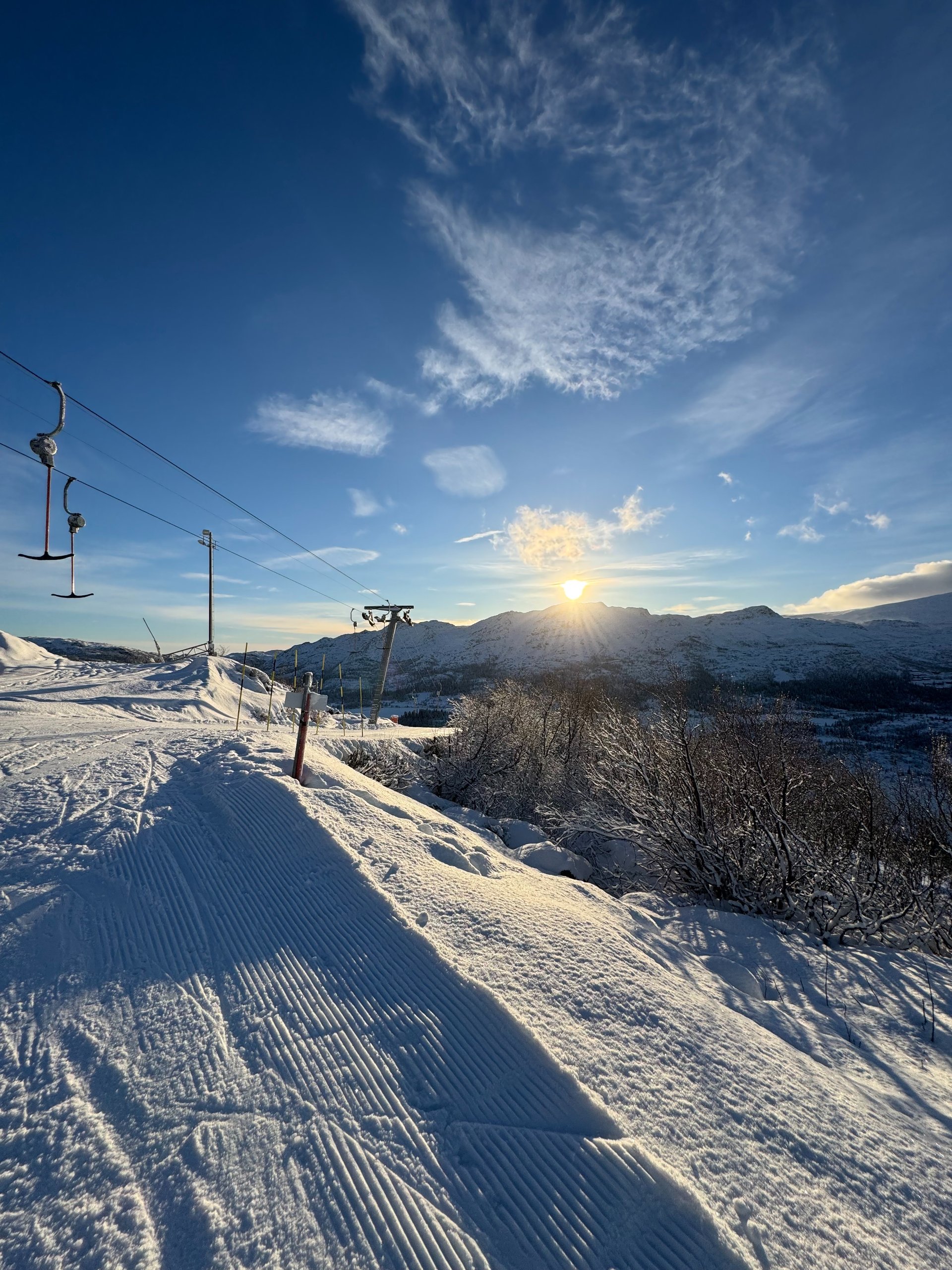 Gausta våknet onsdag opp til 5 cm nysnø, minusgrader og strålende sol. Nå er det også klart at Gausta skisenter bygger en midlertidig skipark ved Hotellbakken.