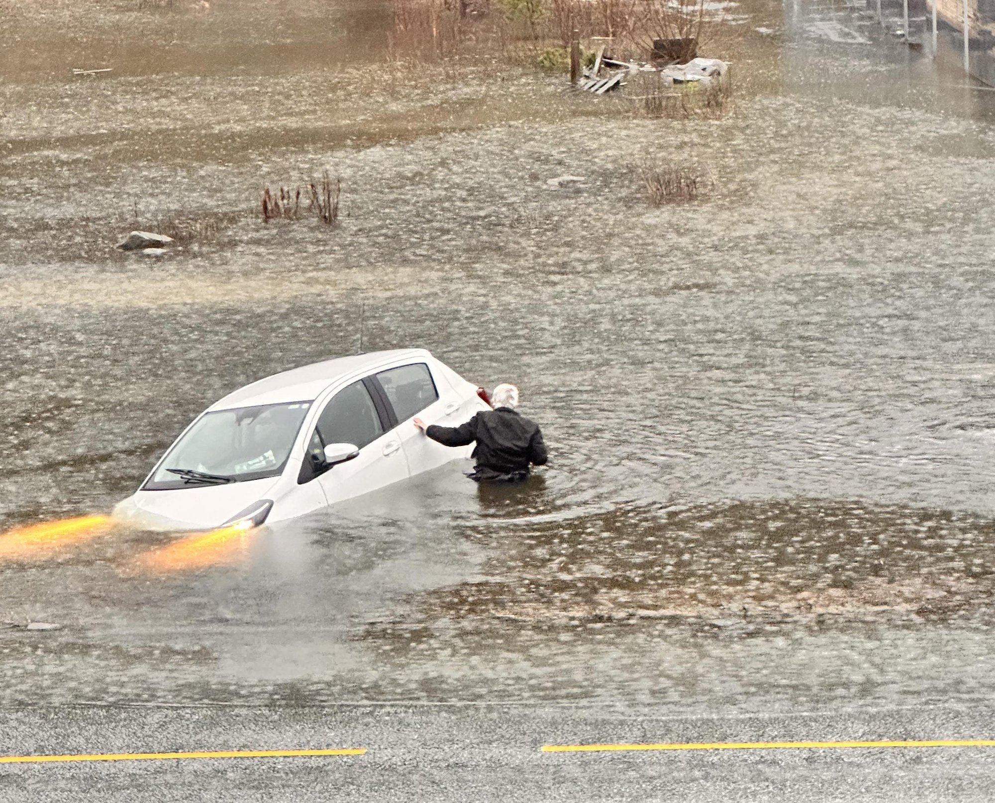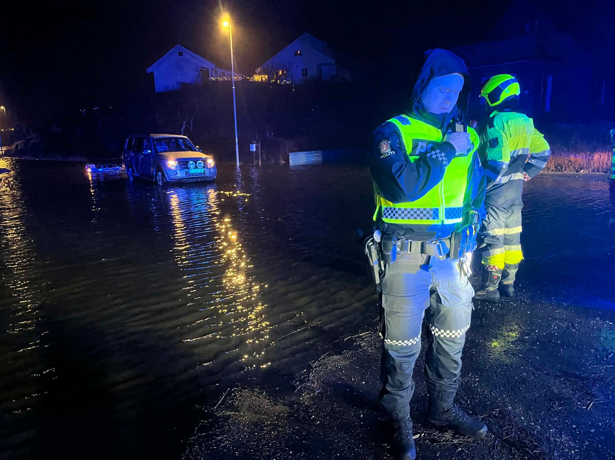 En sjÄfÞr sto plutselig med vann til livet etter at bilen ble stÄende fast i vannmasser like ved BÞesenteret i à rstaddalen i Egersund.