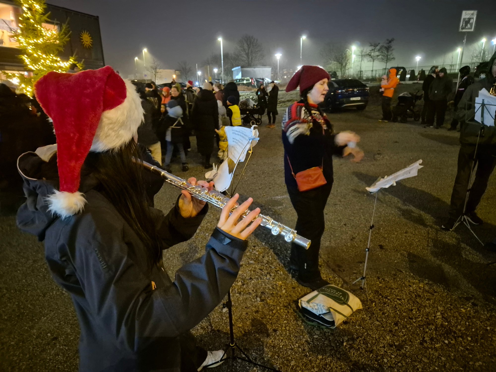 Ganddal menighet sto for en varm opplevelse på en mørk og regnfull søndagskveld: Utendørs førjulsfest ved menighetsbrakkene på Lundehaugen.