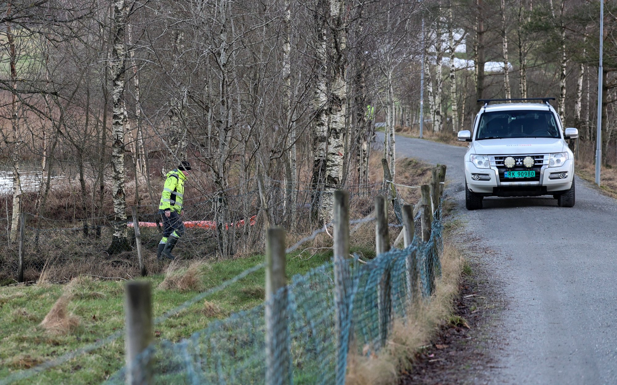 BÄde Statnett og Multiconsult har folk i arbeid rundt Stokkalandsvatnet mandag.
