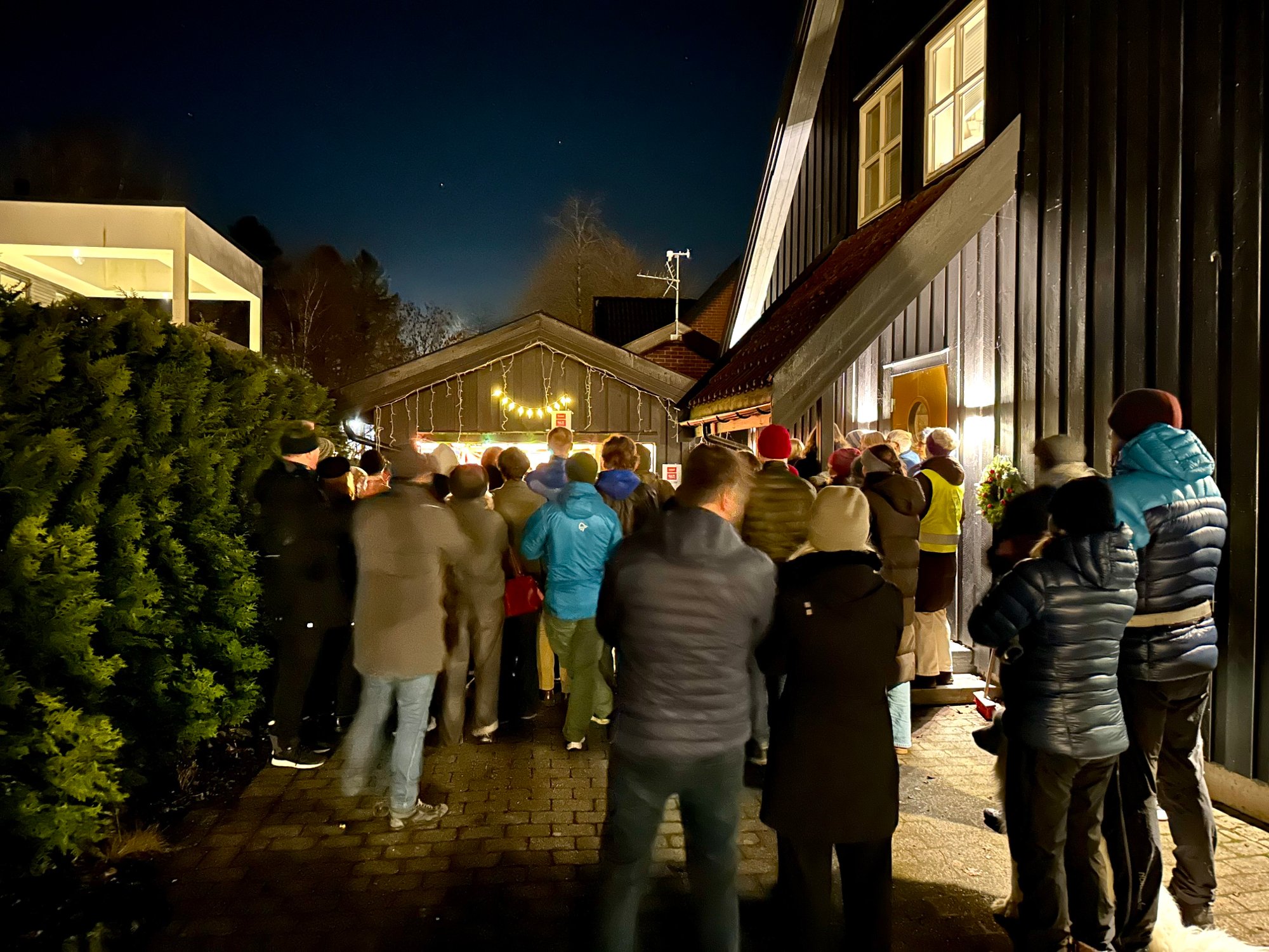 Nabolaget samlet seg ved garasjen for Ă„ synge julen inn.