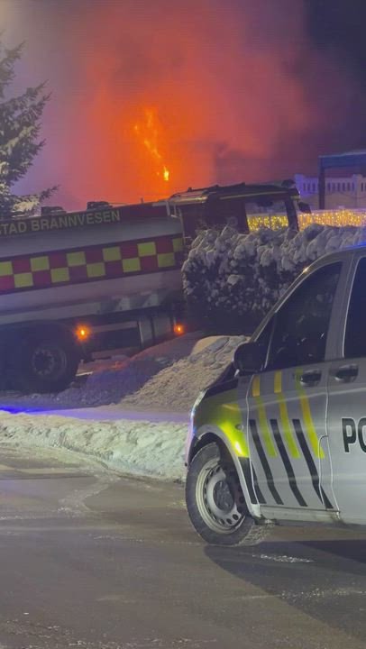 Politiet sikret tidlig omrÄdet pÄ grunn av eksplosjonsfare. Varteigveien er stengt og naboer er evakuert. Men politiet melder nÄ at farepotensiale for eksplosjoner er kraftig nedskalert.