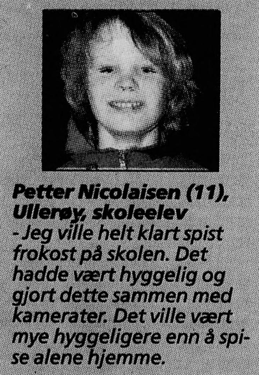 SpÞrsmÄlet til disse fem var «Ville du spist frokost pÄ skolen?».