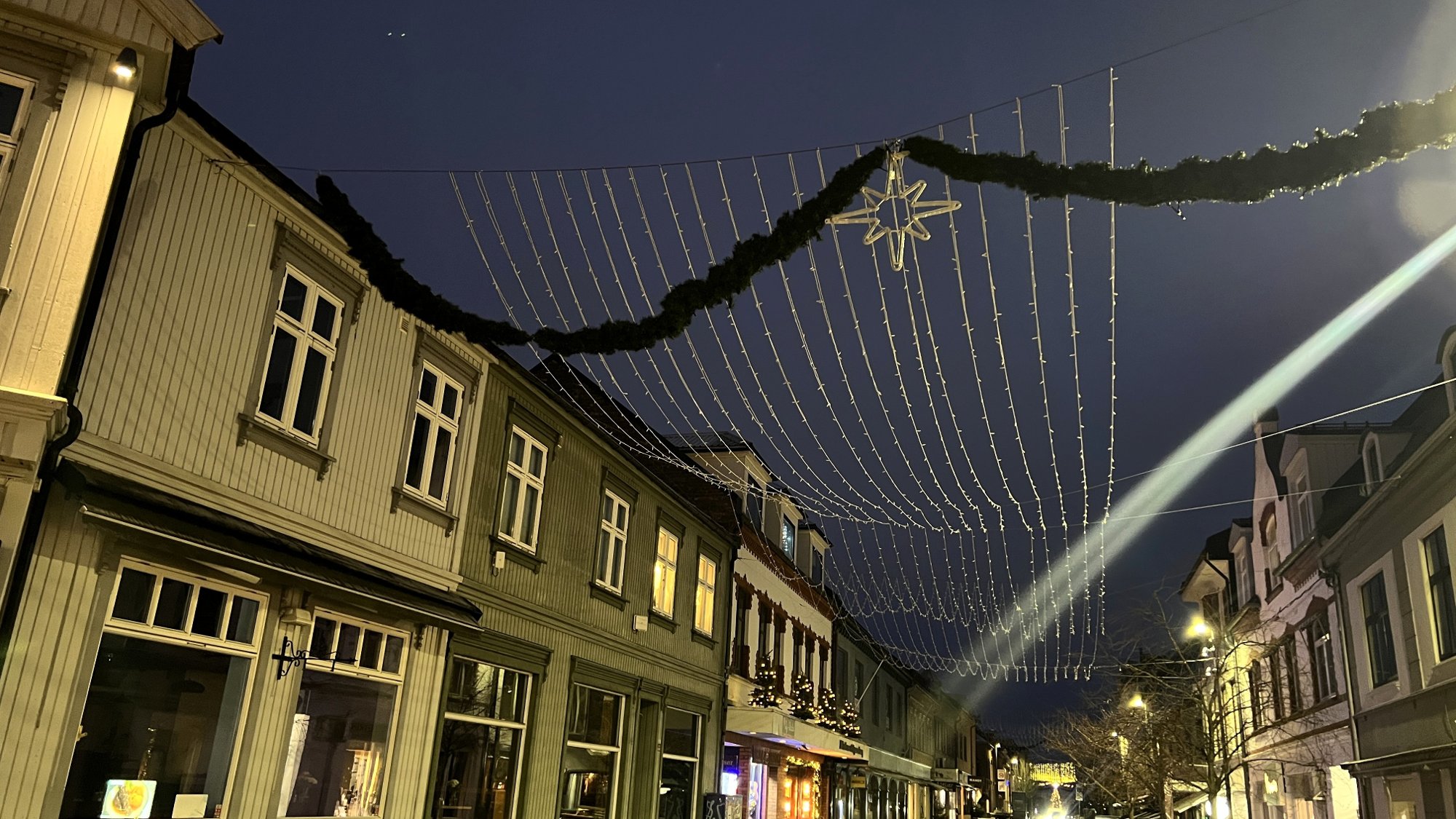 Store deler av julebelysningen i gÄgata var under morgentimene ute av drift.